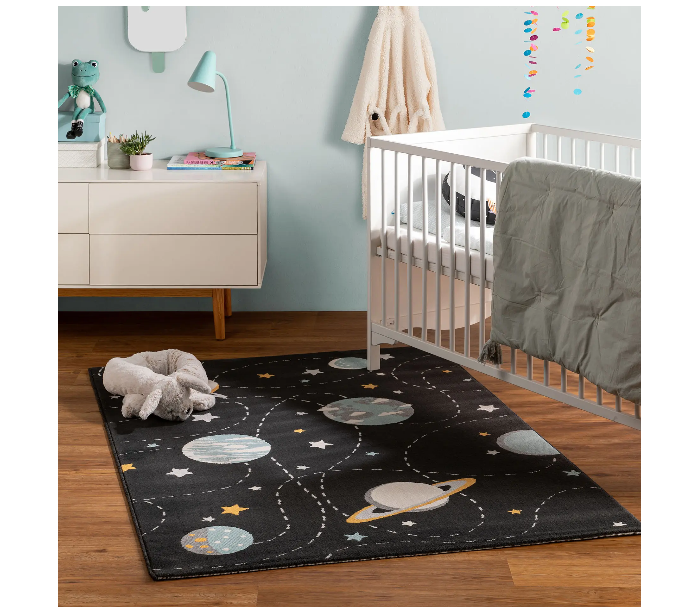 Dekorativt løst tæppe til børneværelset eller stuen, udført i et design af 100% polypropylene. Tæppet måler 160 x 230 cm i bredde og dybde.