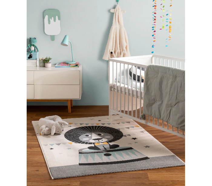 Dekorativt løst tæppe til børneværelset eller stuen, udført i et design af 100% polypropylene. Tæppet måler 120 x 170 cm i bredde og dybde.