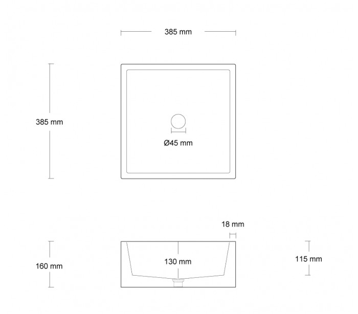 Håndvask til bord 38,5 x 38,5 cm - Beton