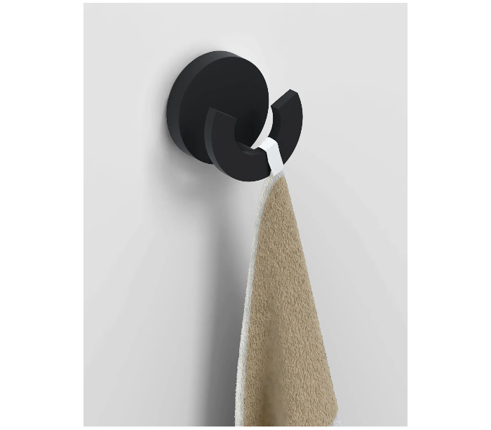 Dobbeltkrog udført i et design af mat sortlakeret metal. Krogen måler 4,8 cm i diameter.