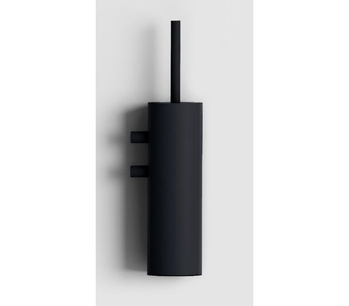 Vægmonteret toiletbørste udført i et design af mat sortlakeret metal. Toiletbørsten måler 37,2 cm i højden.