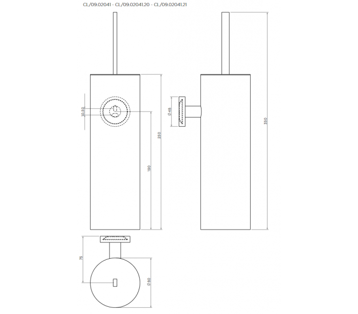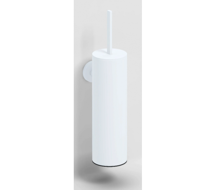 Vægmonteret toiletbørste udført i et design af mat hvidlakeret metal. Toiletbørsten måler 35 cm i højden.