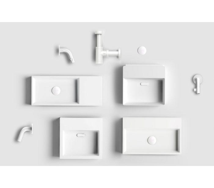 FIRST bundventil, matchende FIRST og NEW FLUSH håndvaskene. Bundventilen er med aftageligt cover i mat hvid.