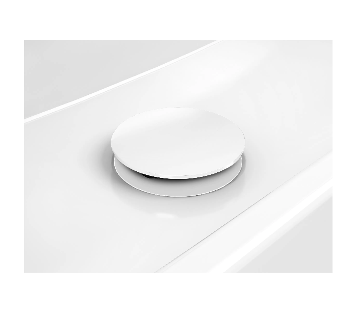 MINI WASH ME bundventil, matchende MINI og PLUS håndvaskene. Bundventilen kan anvendes til håndvaske både med og uden overløb. Bundventilen kan ikke lukkes. Cover er i mat hvid.