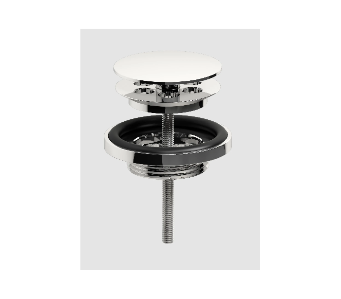 MINI WASH ME bundventil, matchende MINI og PLUS håndvaskene. Bundventilen kan anvendes til håndvaske både med og uden overløb. Bundventilen kan ikke lukkes. Cover er i krom.