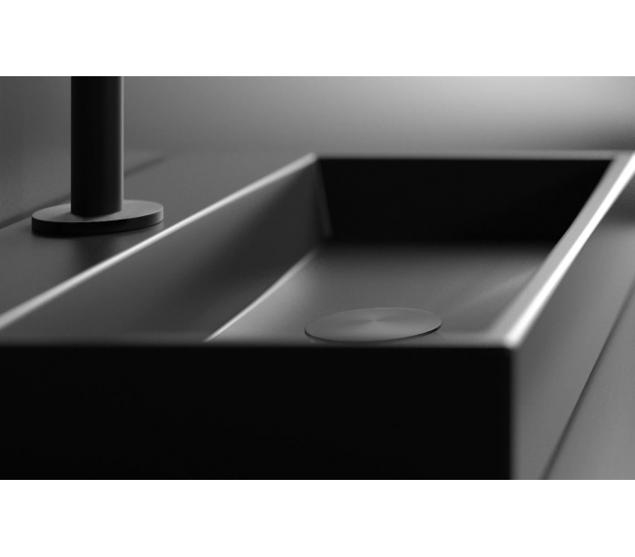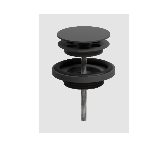 MINI WASH ME bundventil, matchende MINI og PLUS håndvaskene. Bundventilen kan anvendes til håndvaske både med og uden overløb. Bundventilen kan ikke lukkes. Cover er i mat sort.