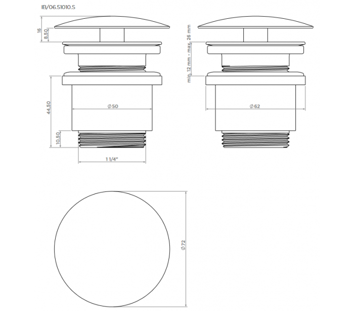 INBE bundventil udført i et moderne design af kromlakeret metal. Bundventilen er standard mål 1 1/4" og passer til alle standard håndvaske. Bundventilen kan ikke lukkes.