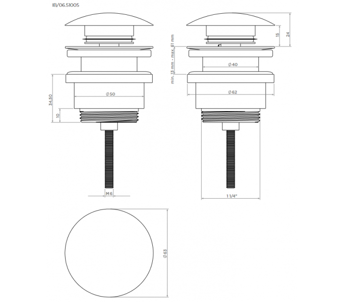 INBE bundventil udført i et moderne design af kromlakeret metal. Bundventilen er standard mål 1 1/4" og passer til alle standard håndvaske. Bundventilen har pop-up funktion.