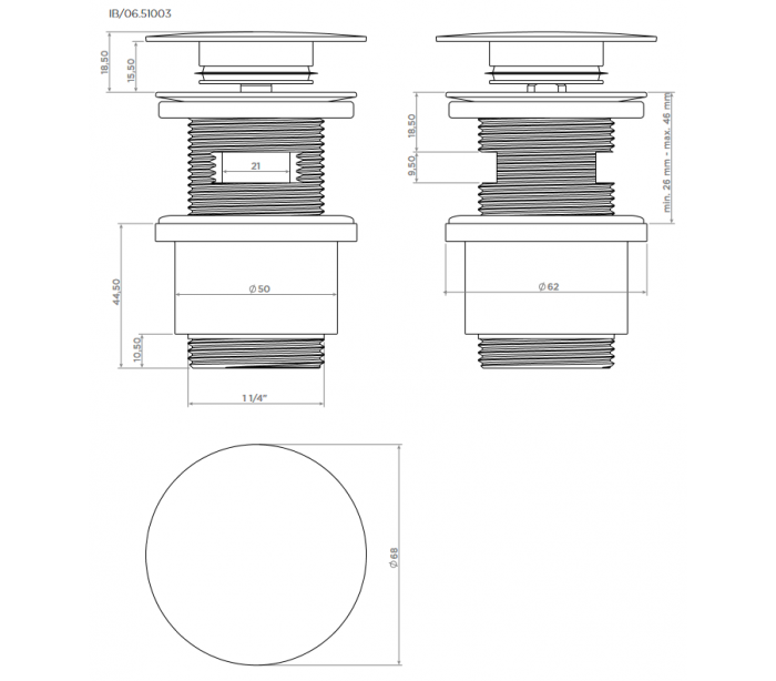 INBE bundventil udført i et moderne design af kromlakeret metal. Bundventilen er standard mål 1 1/4" og passer til alle standard håndvaske. Bundventilen har pop-up funktion og overløb.