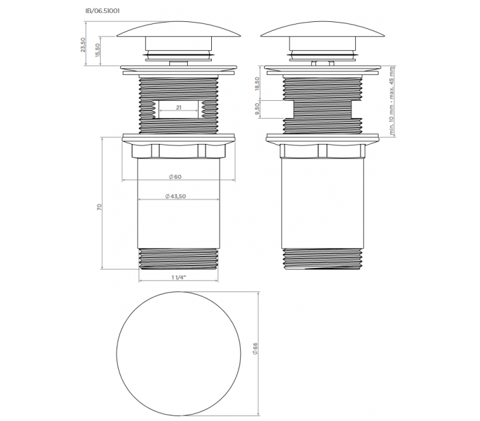 INBE bundventil udført i et moderne design af kromlakeret metal. Bundventilen er standard mål 1 1/4" og passer til alle standard håndvaske. Bundventilen har pop-up funktion og overløb.