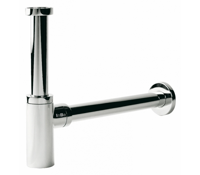 INBE vandlås/afløb udført i et moderne design af kromlakeret metal. Vandlåsen passer til alle standard håndvaske.