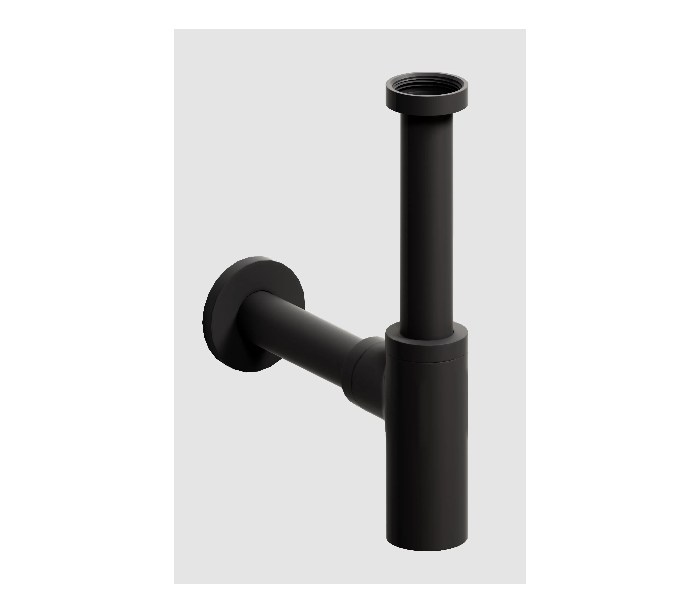 INBE vandlås/afløb udført i et moderne design af mat sortlakeret metal. Vandlåsen passer til alle standard håndvaske.