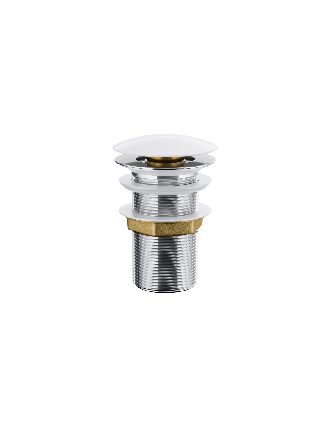 Bundventil med pop-up funktion til håndvaske, udført i et moderne og stilrent design af hvidlakeret messing. Bundventilen er standard 40 mm.