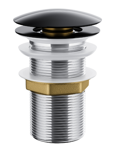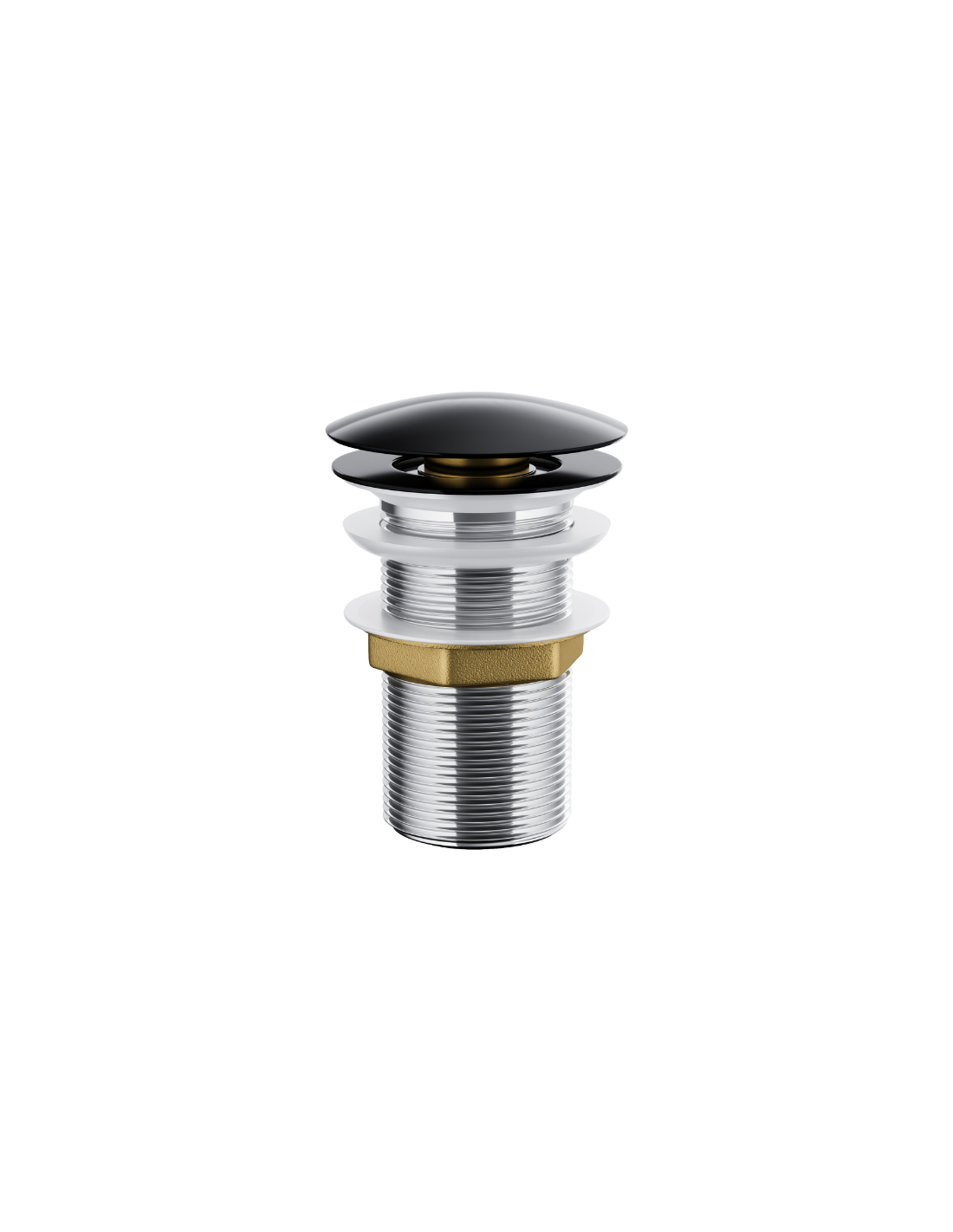 Bundventil med pop-up funktion til håndvaske, udført i et moderne og stilrent design af sortlakeret messing. Bundventilen er standard 40 mm.