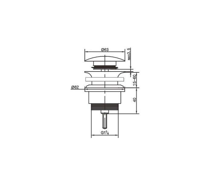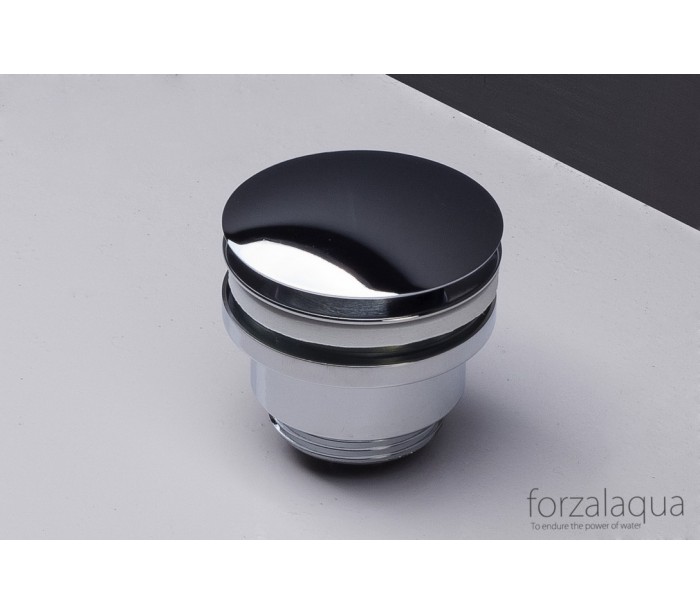 Bundventil med push funktion til håndvask, fremstillet i poleret krom.