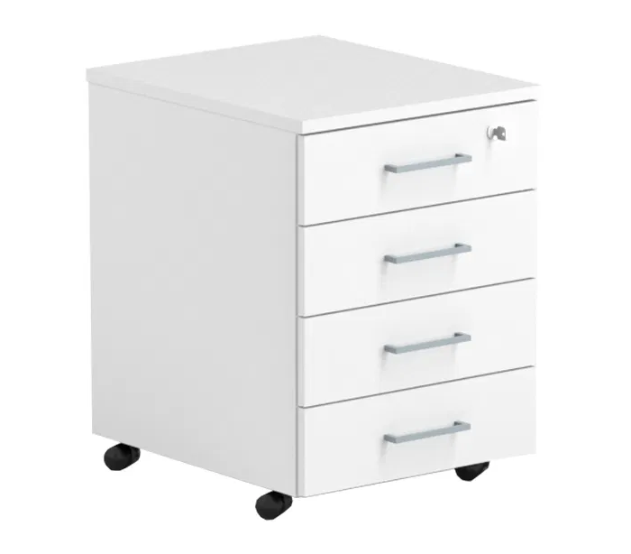 EP Xtra skuffesektion til skrivebord, udført i et design i hvid laminat. Skuffesektionent måler 63,8 cm i højden og 41,5 x 50 cm i bredde og dybde. Sektionen er med 4 skuffer, og 2 nøgler.
