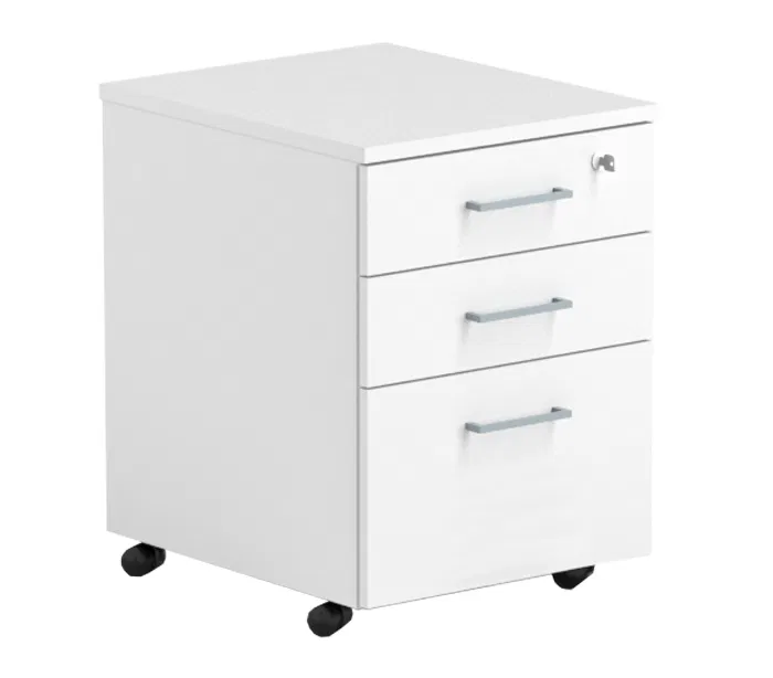 EP Xtra skuffesektion til skrivebord, udført i et design i hvid laminat. Skuffesektionent måler 63,8 cm i højden og 41,5 x 50 cm i bredde og dybde. Sektionen er med 3 skuffer, og 2 nøgler.