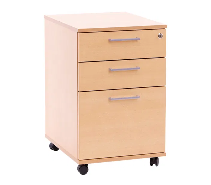 EP Xtra skuffesektion til skrivebord, udført i et design i bøgetræsfarvet laminat. Skuffesektionent måler 63,8 cm i højden og 41,5 x 50 cm i bredde og dybde. Sektionen er med 3 skuffer, og 2 nøgler.