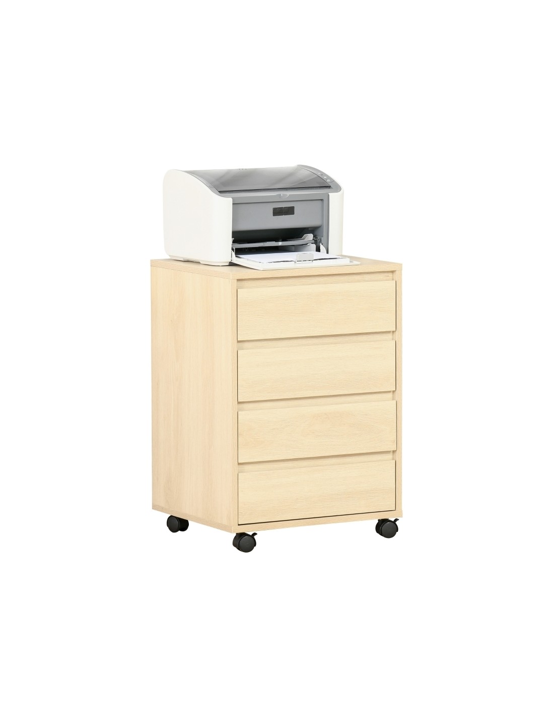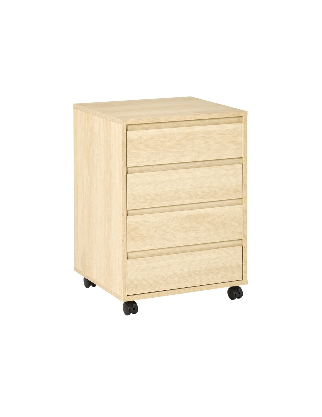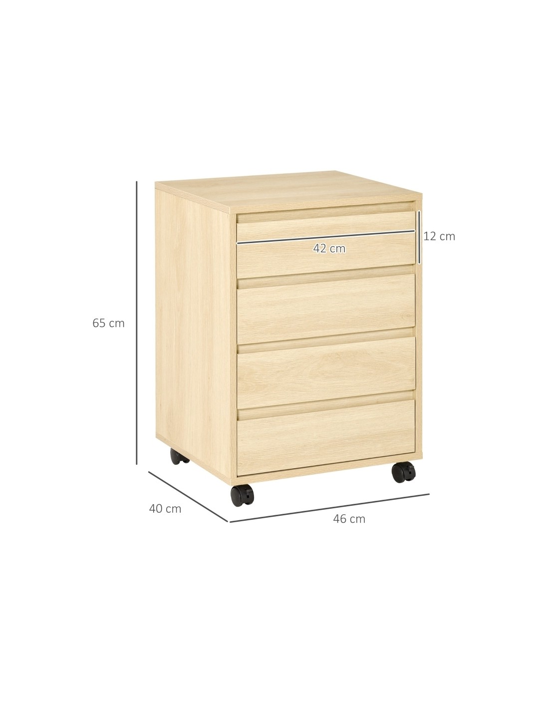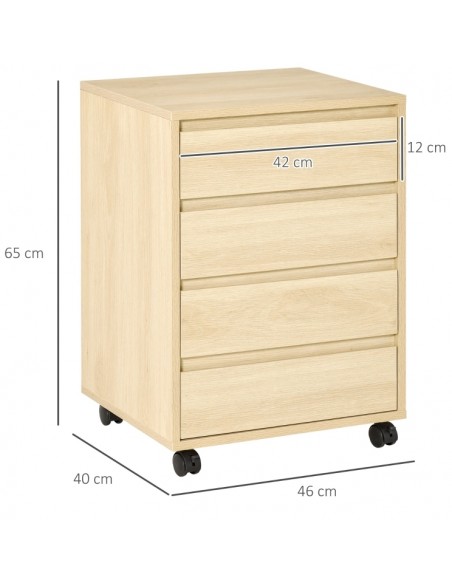 Skuffesektion på hjul med 4 skuffer. Skuffesektionen er fremstillet i MDF og måler 65 cm i højden og 46 x 40 cm i bredde og dybde.
