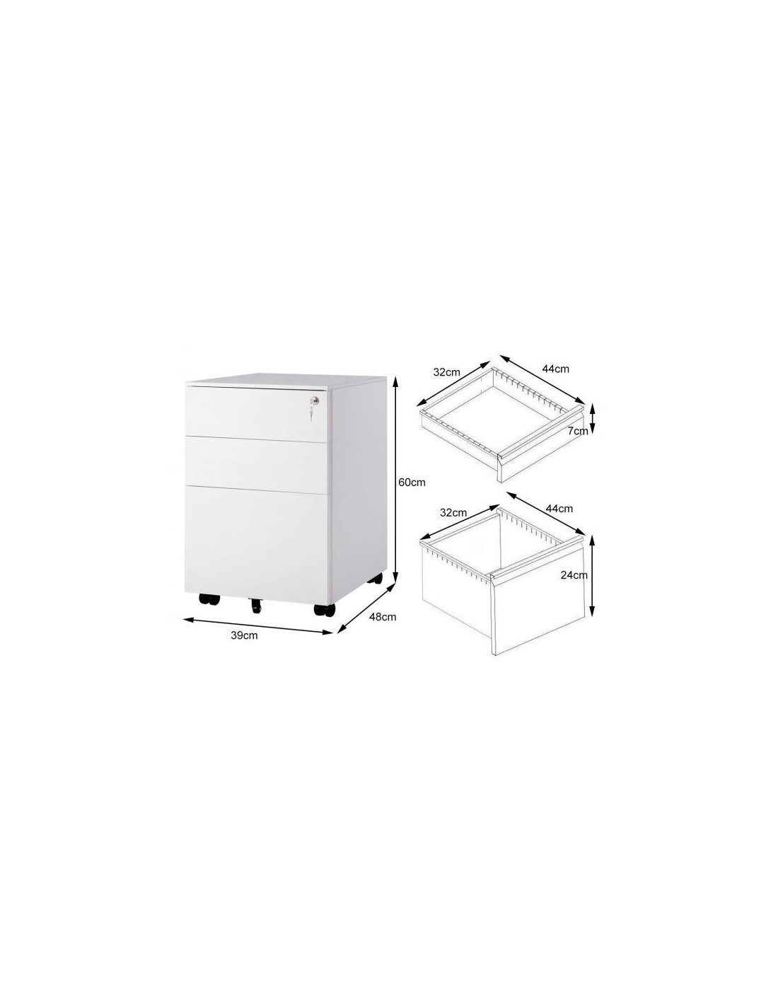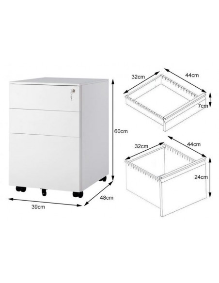 Skuffesektion udført i et design af hvidlakeret metal. Skuffesektionen måler 60 cm i højden og 39 x 48 cm i bredde og dybde.
