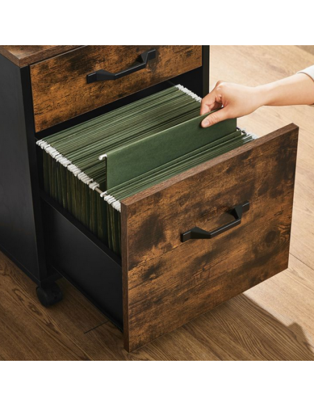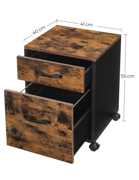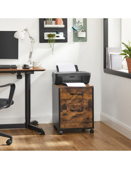Skuffesektion udført i et design af sortlakeret metal og brun møbelplade. Skuffesektionen måler 55 cm i højden og 41 x 40 cm i bredde og dybde.