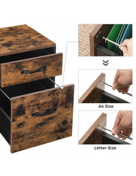 Skuffesektion i metal og møbelplade H55 x B41 cm - Sort/Brun