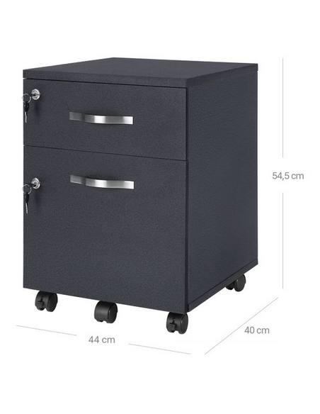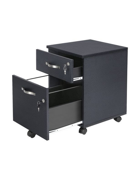 Skuffesektion udført i et design af sort mdf. Skuffesektionen måler 54,5 cm i højden og 40 x 44 cm i bredde og dybde.