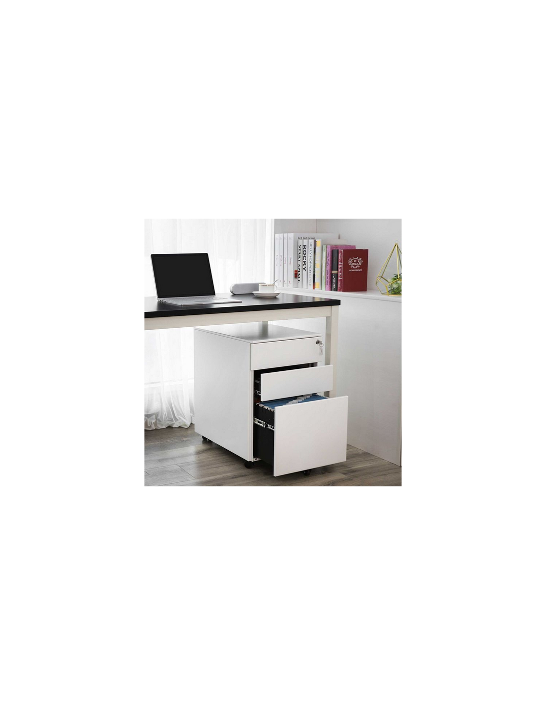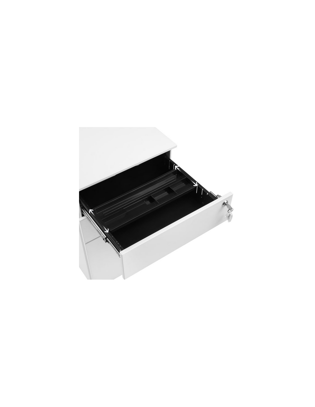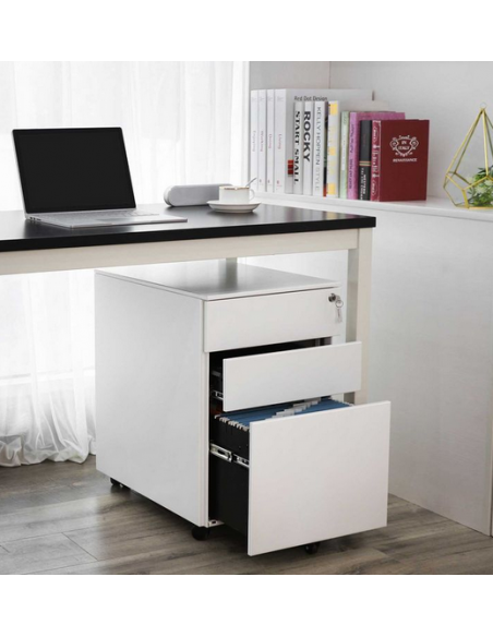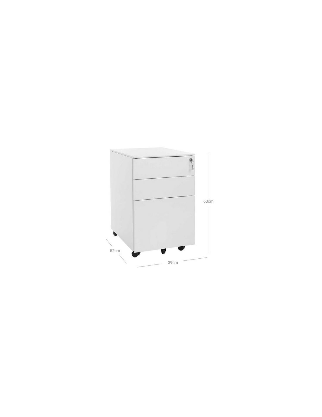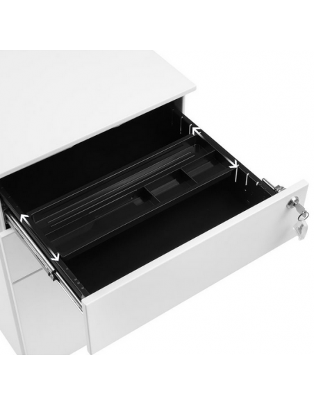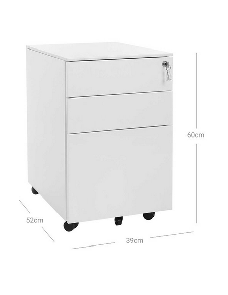 Skuffesektion udført i et design af hvid metal. Skuffesektionen måler 60 cm i højden og 39 x 52 cm i bredde og dybde.
