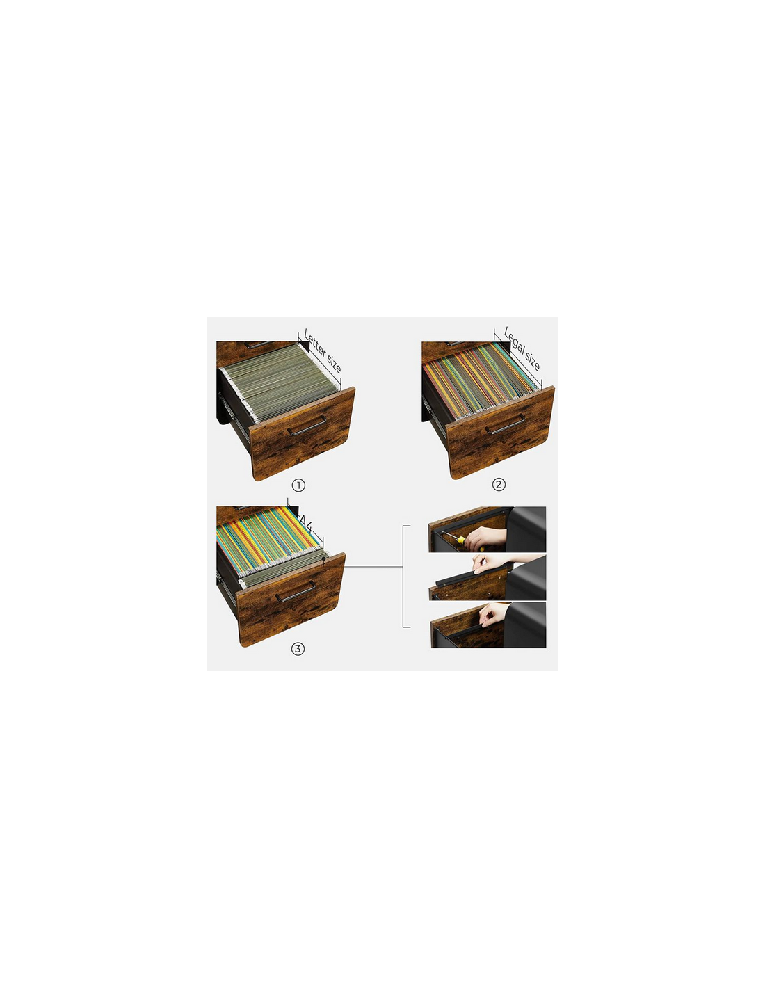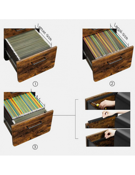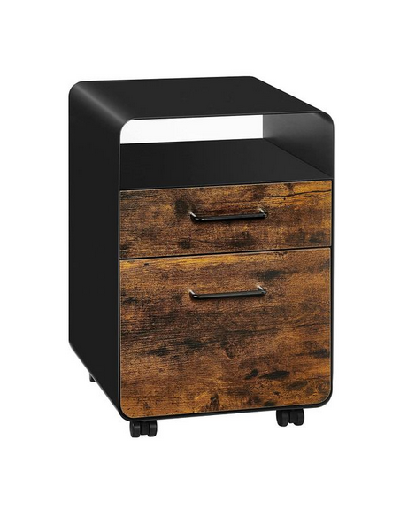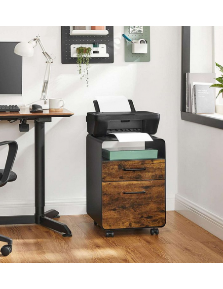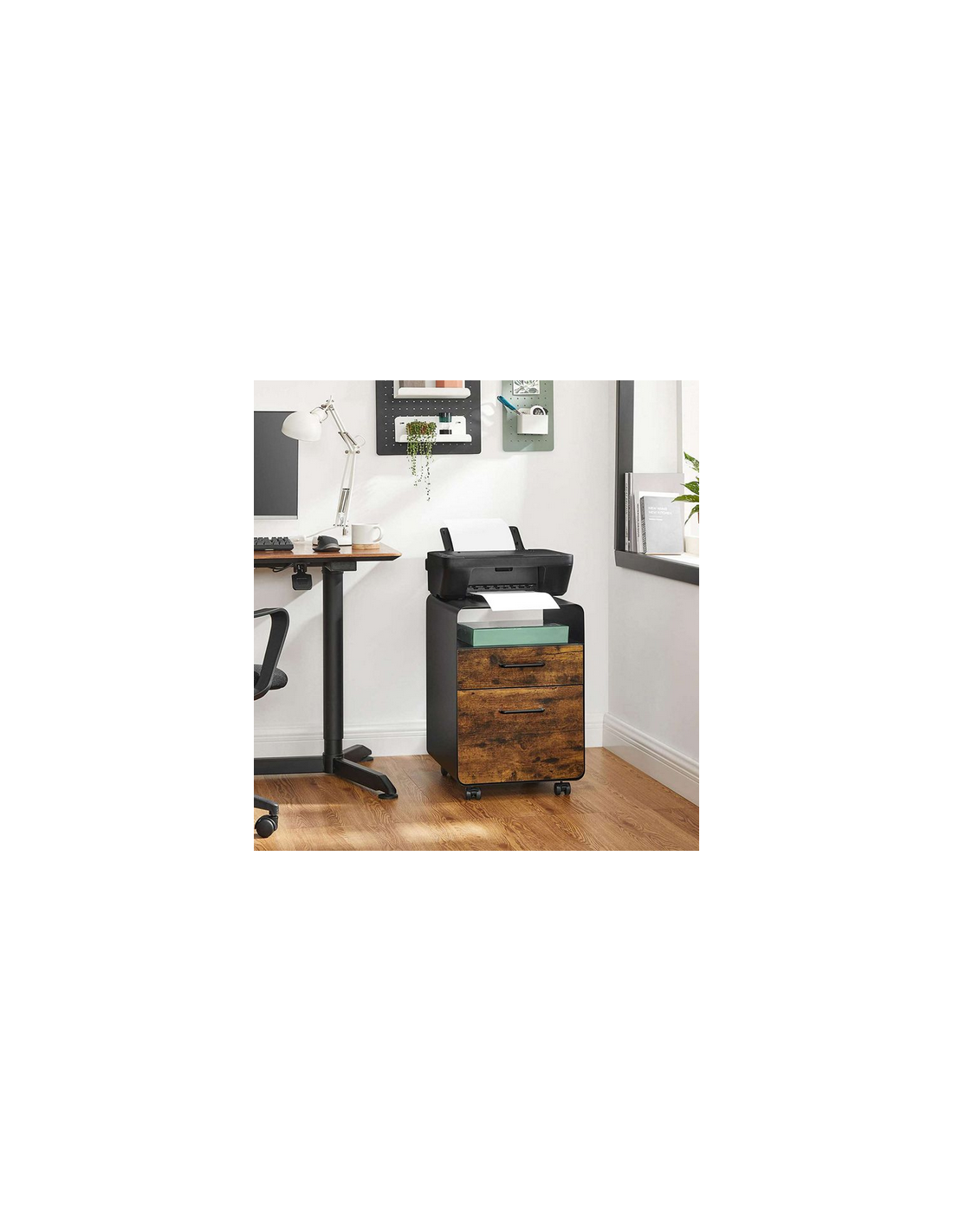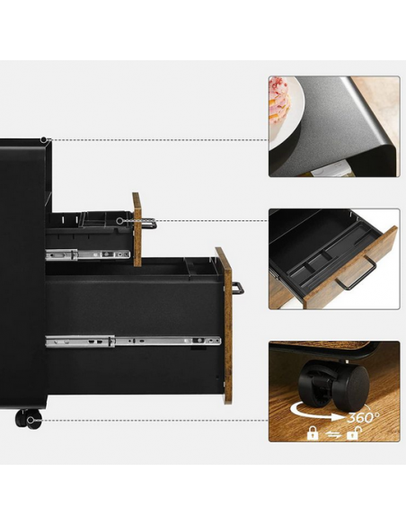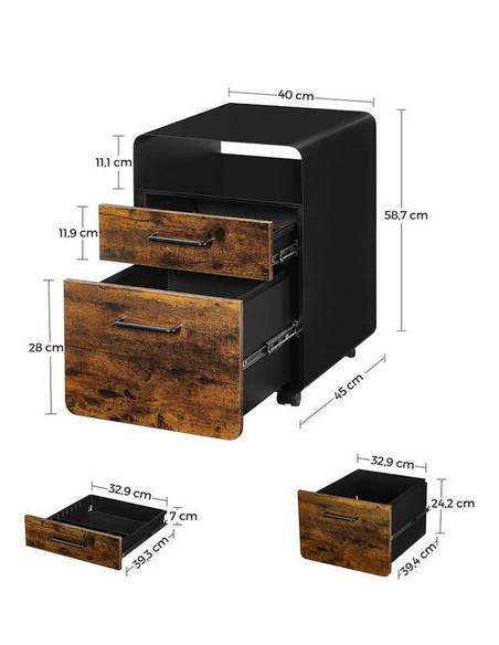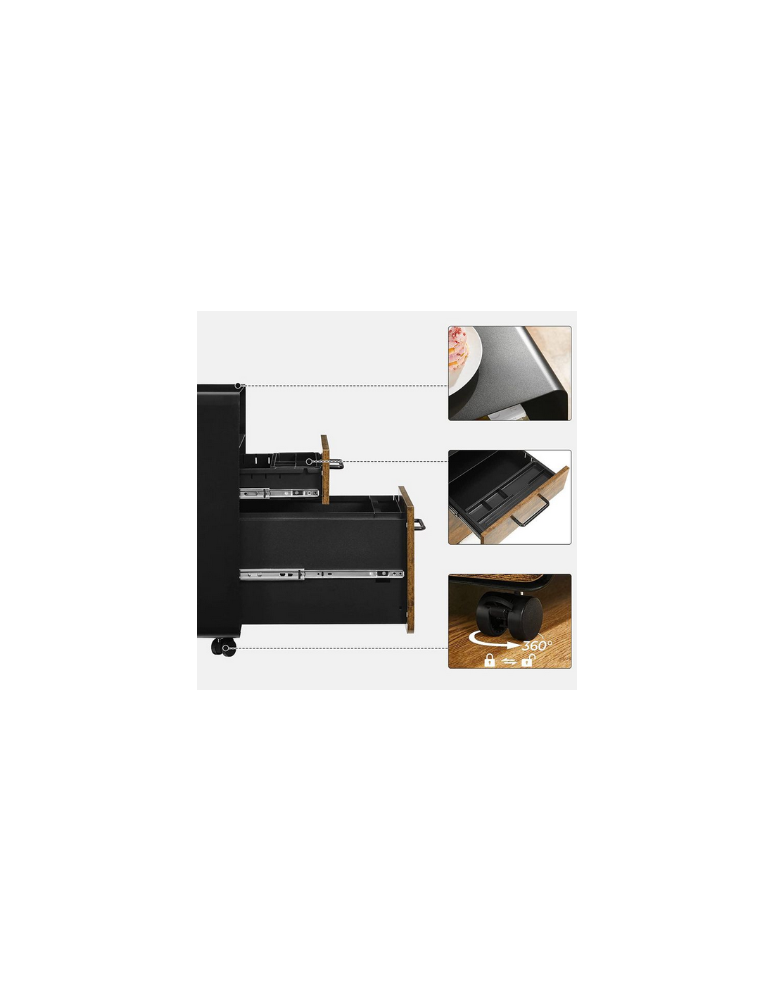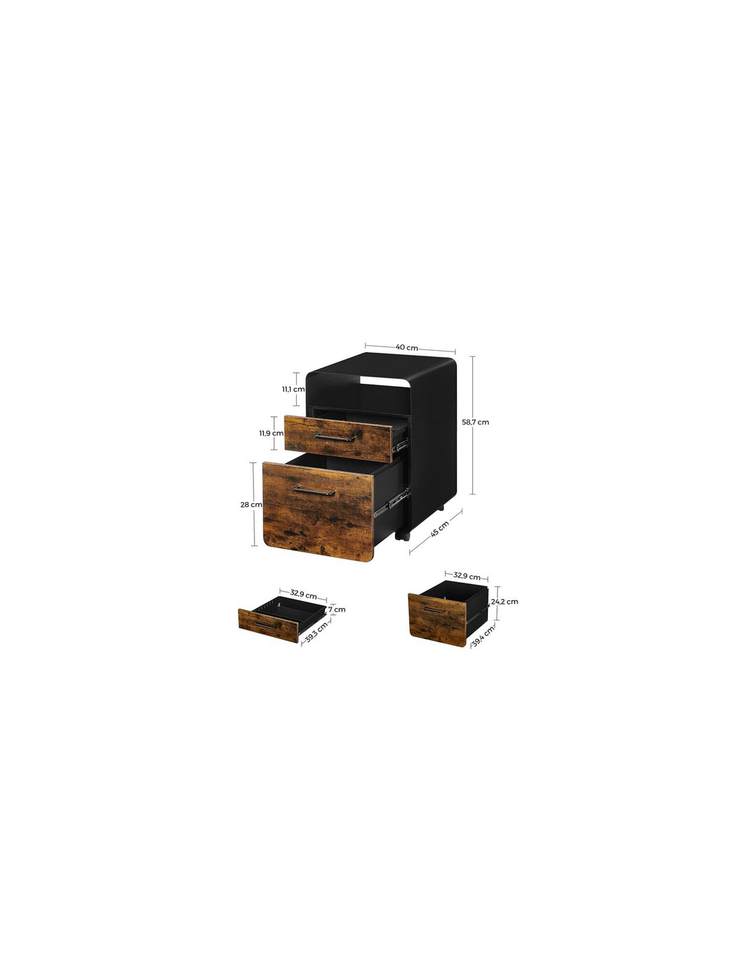 Skuffesektion udført i et design af sort metal og brun møbelplade. Skuffesektionen måler 58,7 cm i højden og 40 x 45 cm i bredde og dybde.