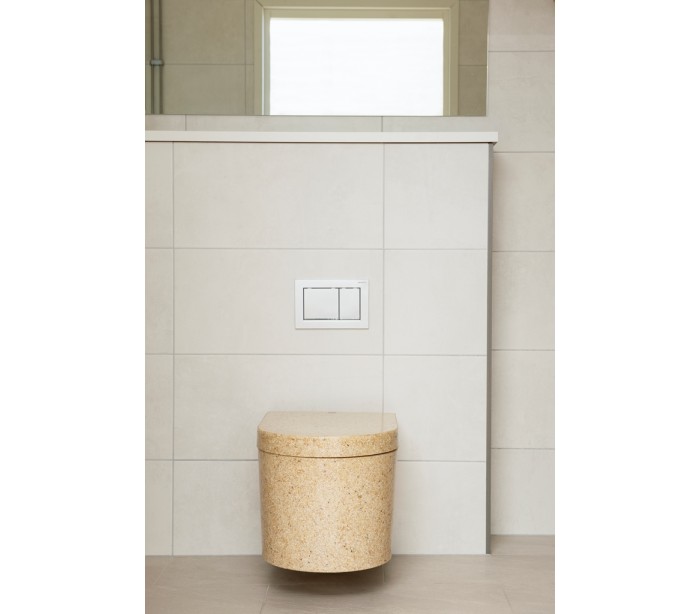 Woodio Block væghængt toilet fremstillet i bæredygtige materialer fra de Finske skove (80% ren træ/20% resin). De bløde runde kanter gør toilettet behageligt at sidde på, og tidsløst at se på. Toiletsædet er med soft-close funktion. Toilettet passer til de fleste afløbssystemer jf. EU standarden EN 14055: 2010.