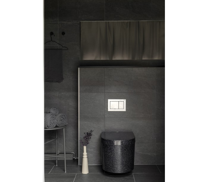 Woodio Block væghængt toilet fremstillet i bæredygtige materialer fra de Finske skove (80% ren træ/20% resin). De bløde runde kanter gør toilettet behageligt at sidde på, og tidsløst at se på. Toiletsædet er med soft-close funktion. Toilettet passer til de fleste afløbssystemer jf. EU standarden EN 14055: 2010.