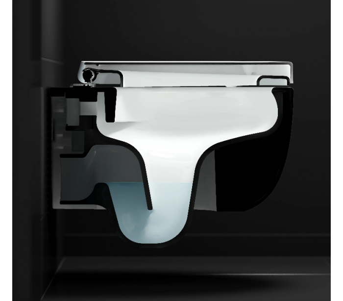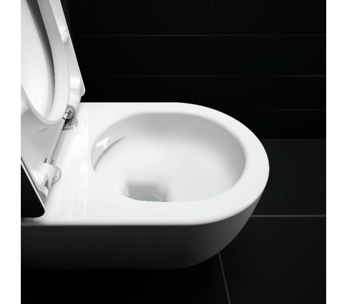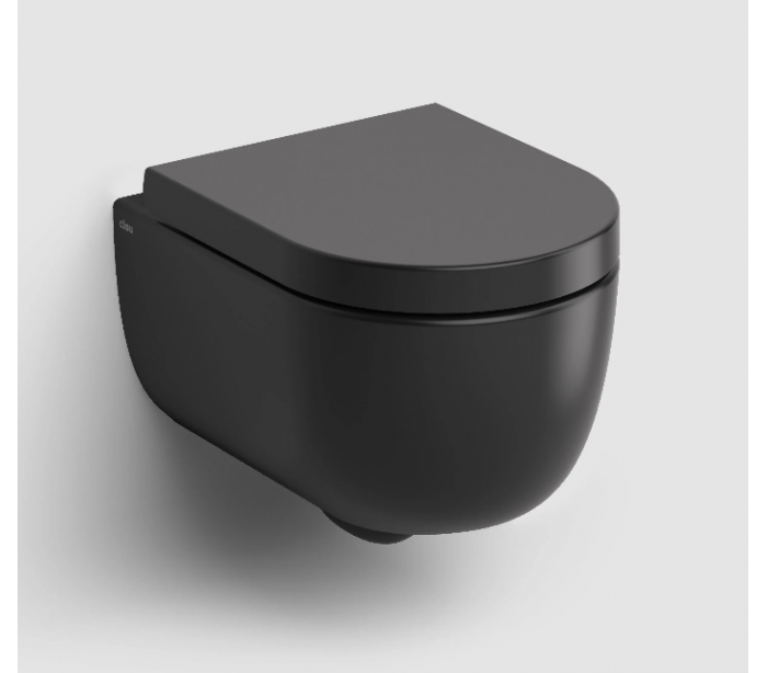 Væghængt toilet udført i et design af mat sort keramik. Toilettet måler 37,5 cm i højden og 36,8 x 49 cm i bredde og dybde. Der medfølger toiletsæde med cover med soft close samt monteringssæt.