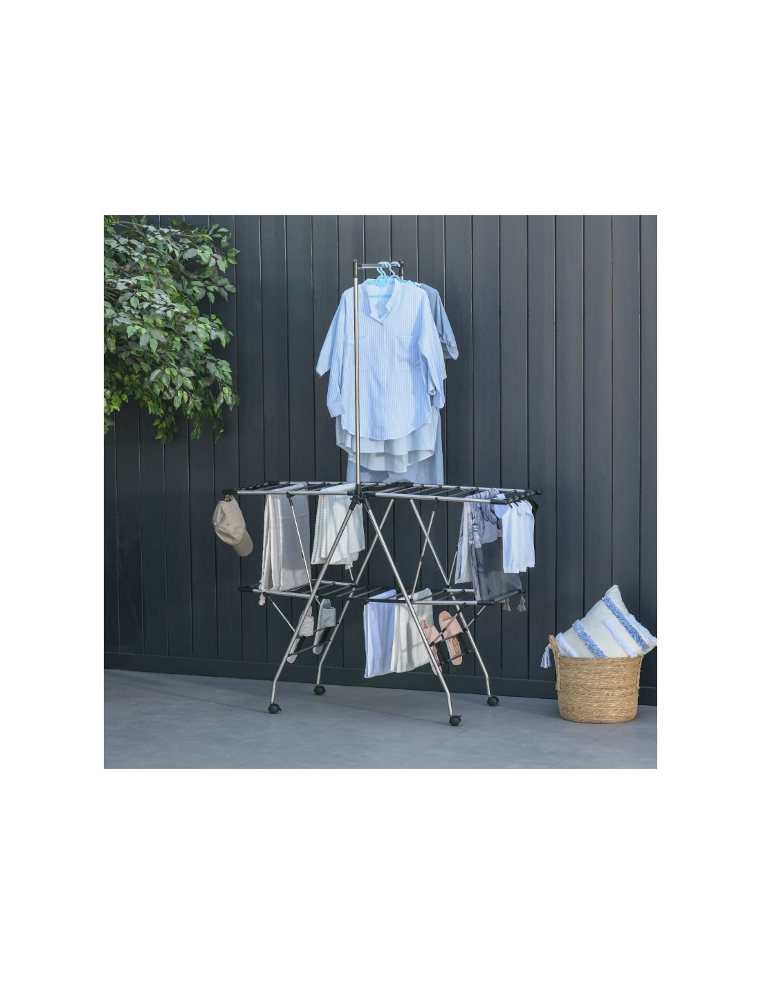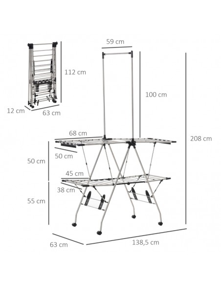 Tørrestativ i stål og kunststof 138,5 x 63 x 208 cm - Sølv/Sort