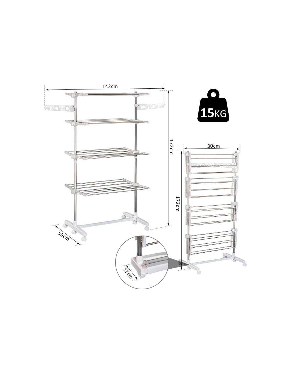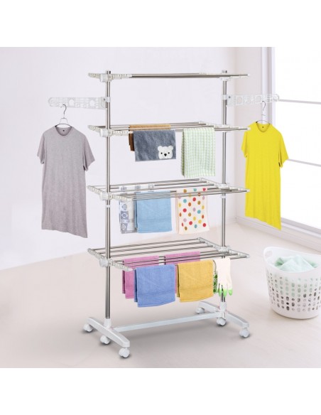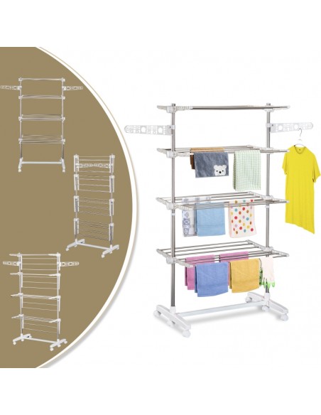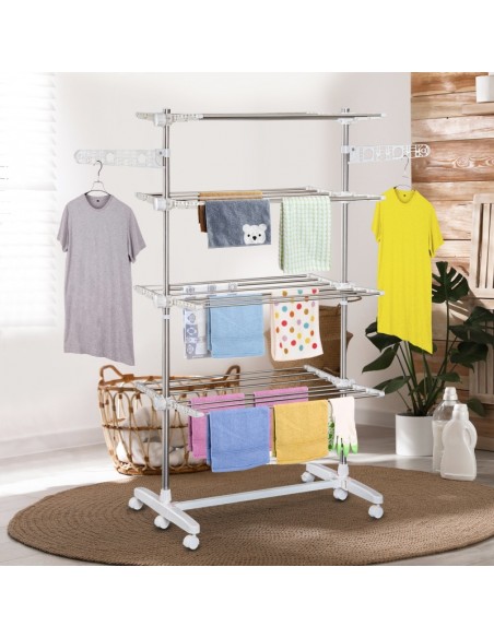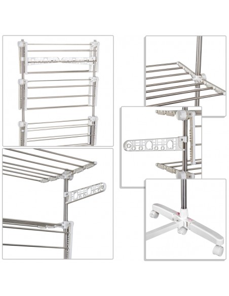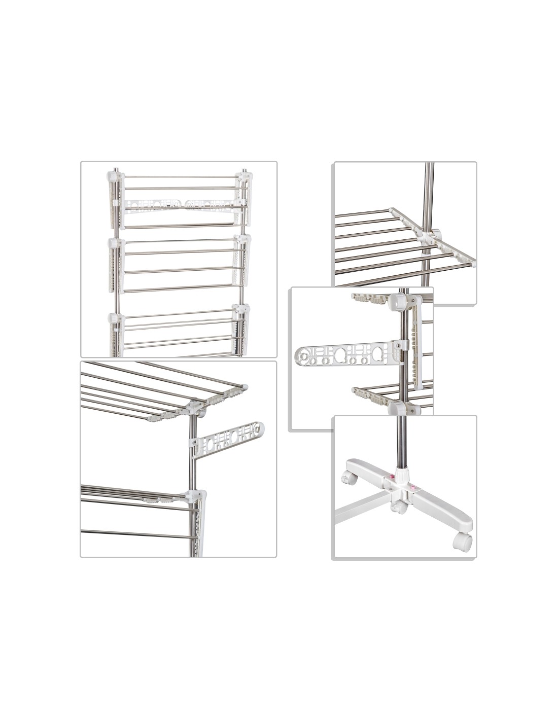 Tørrestativ i stål og kunststof 80 x 55 x 172 cm - Sølv/Hvid