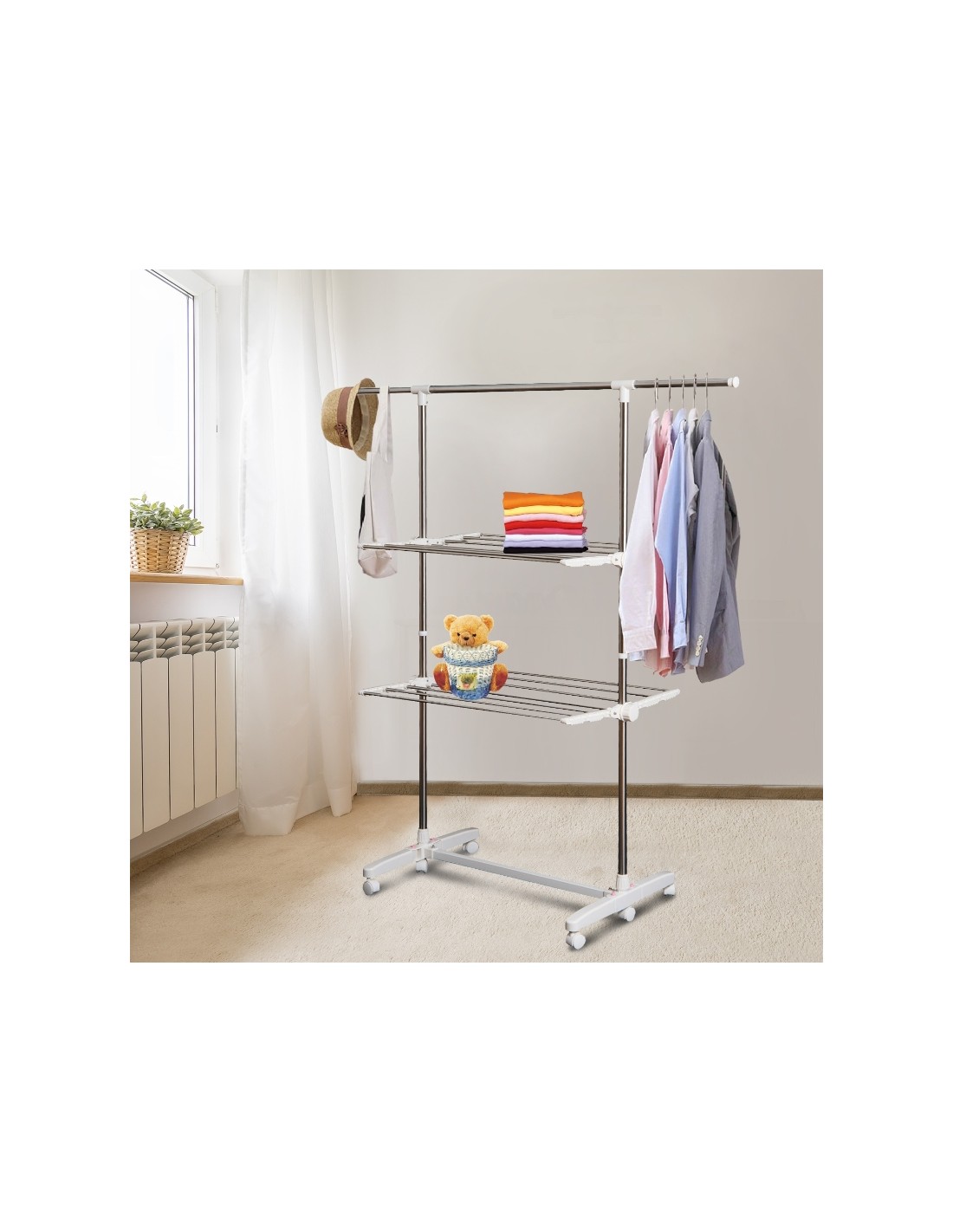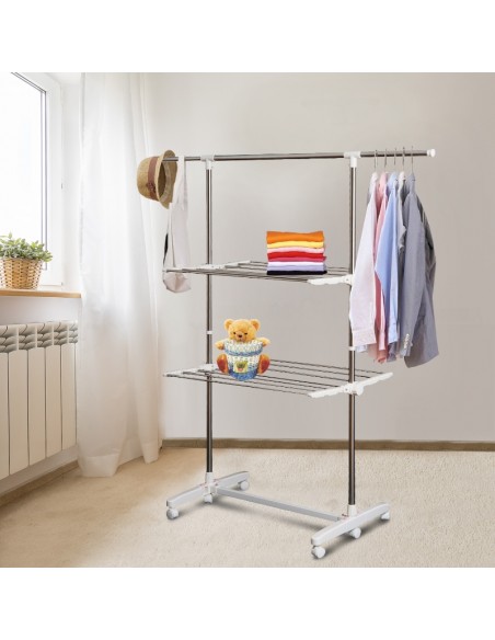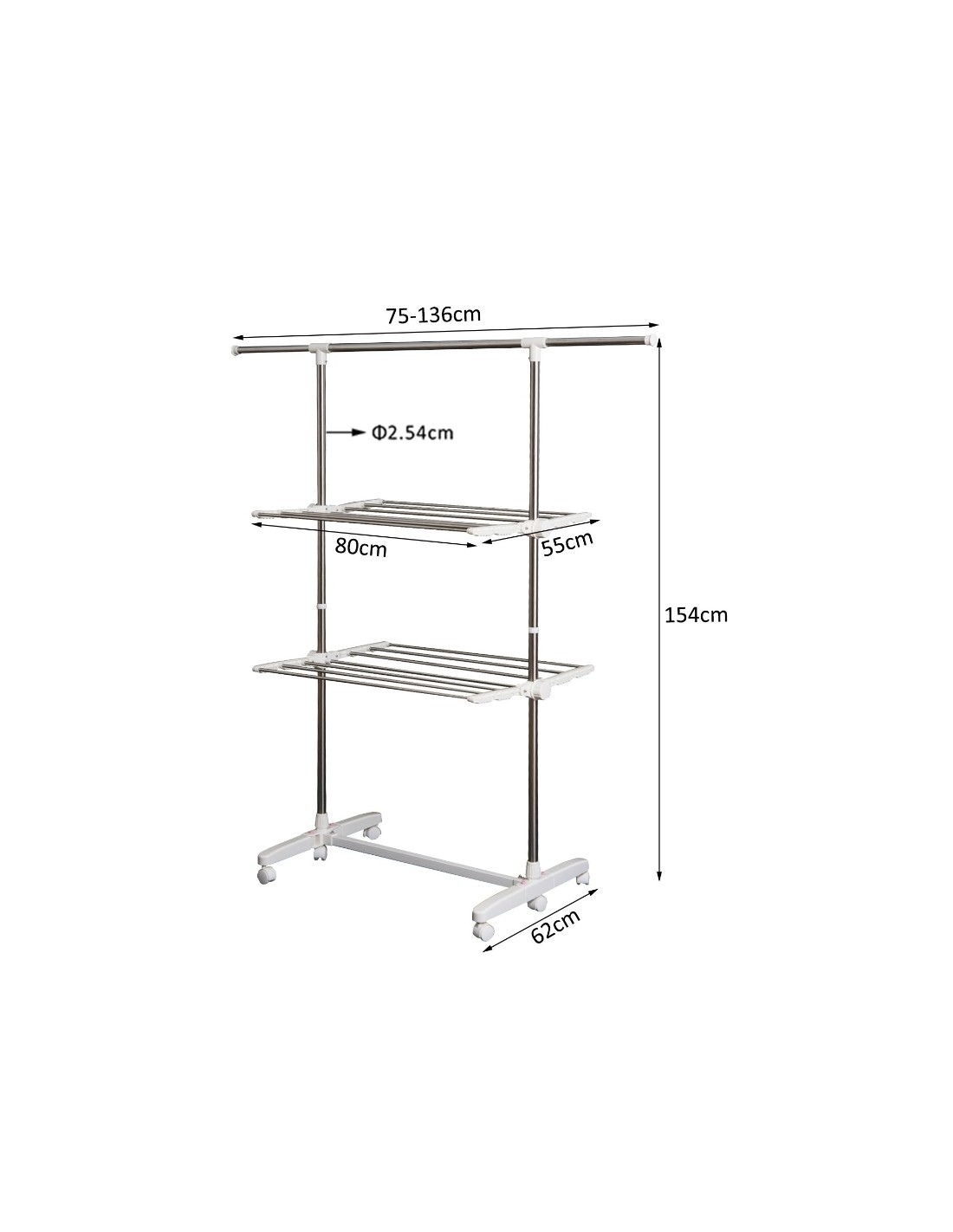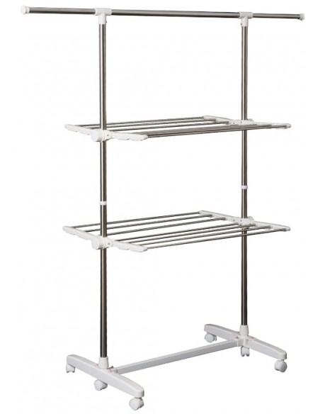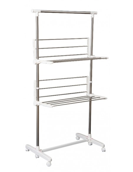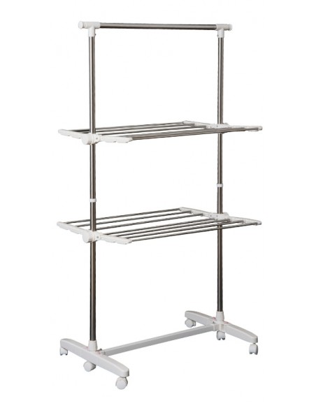 Tørrestativ i stål og kunststof 75 x 62 x 154 cm - Sølv/Hvid