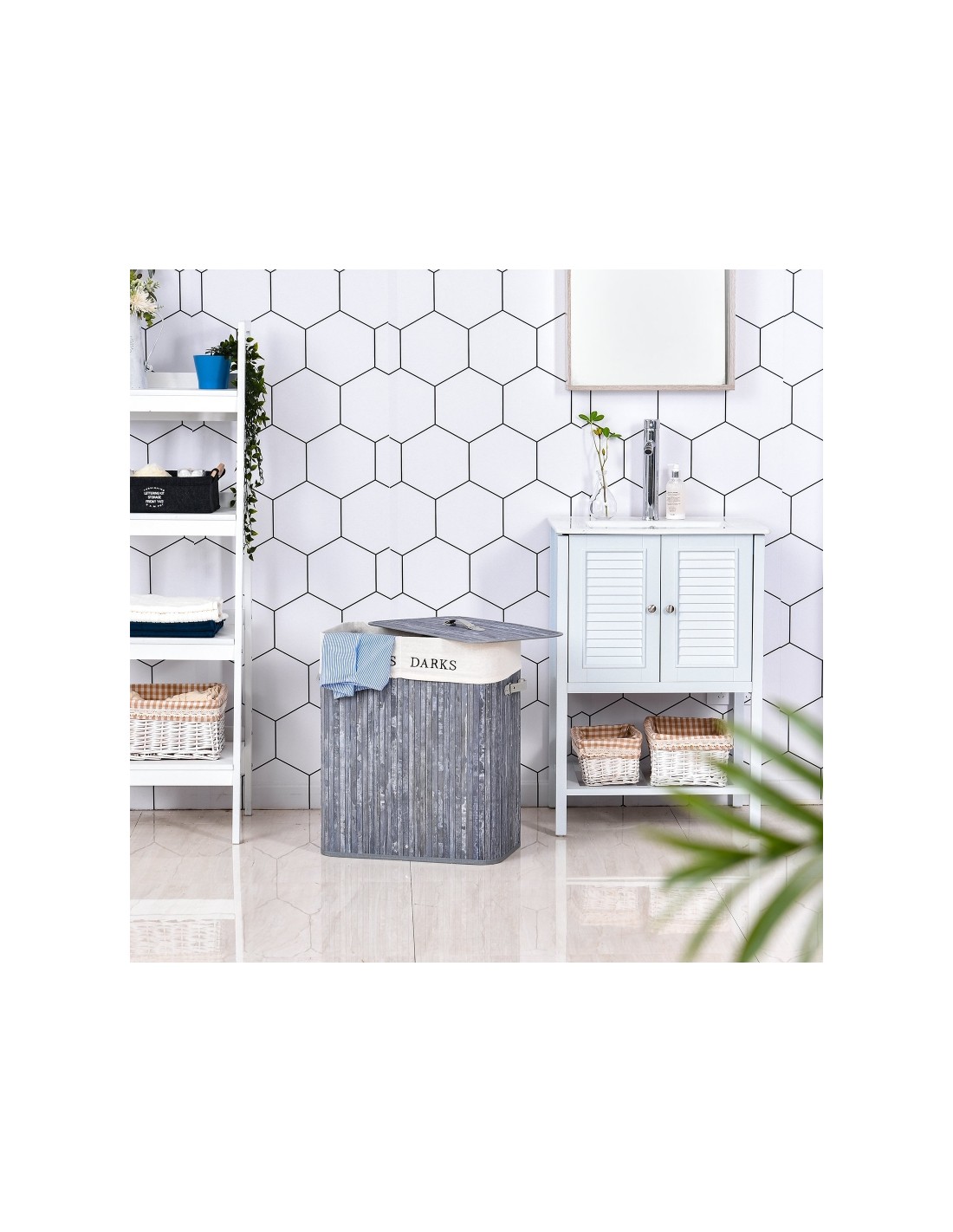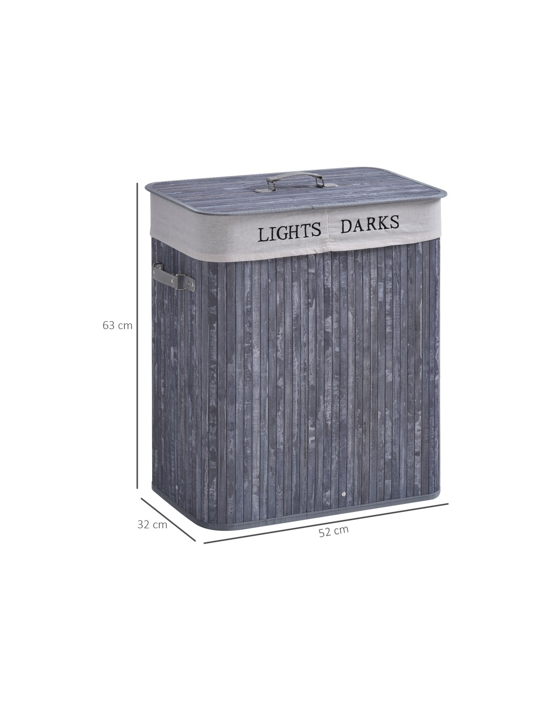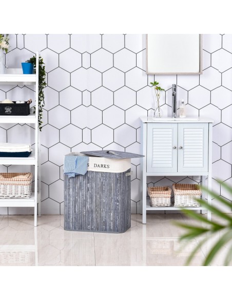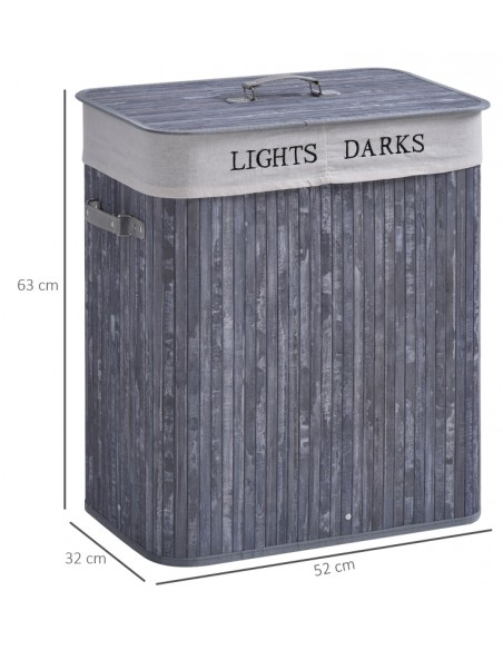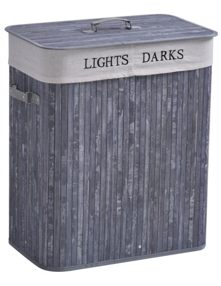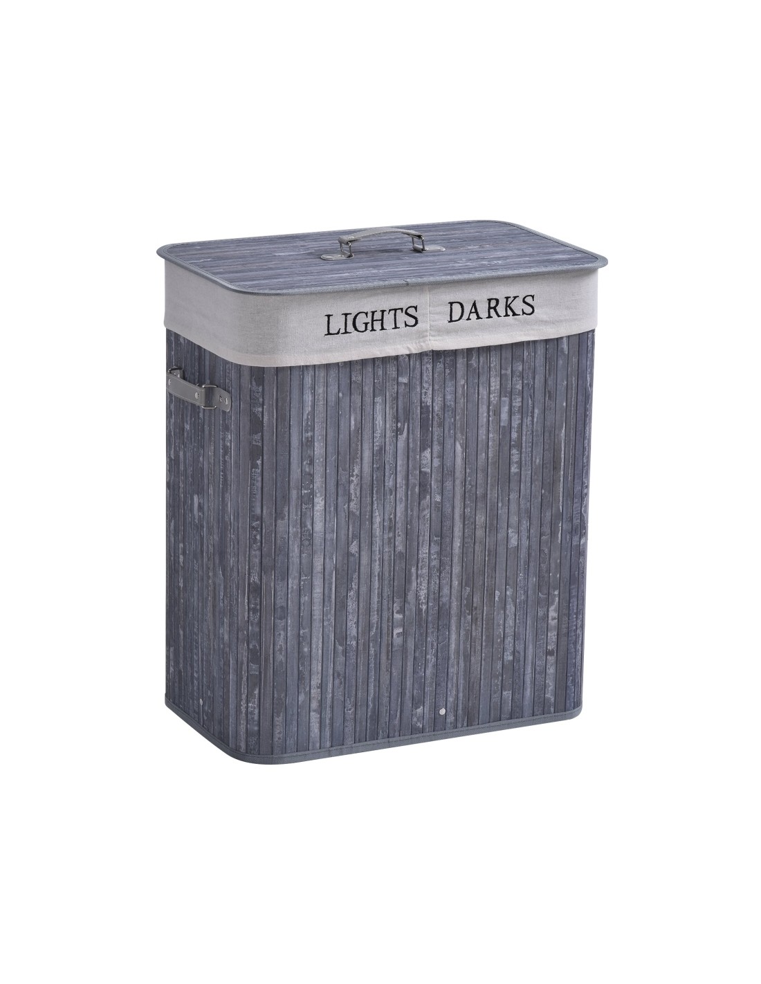 Vasketøjskurv i bambus og tekstil H63 cm - Vintage grå