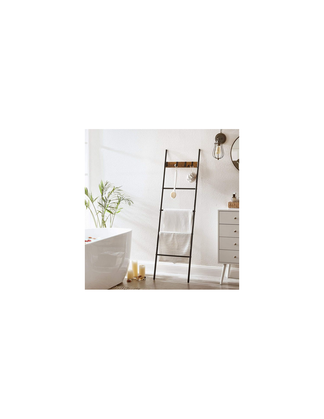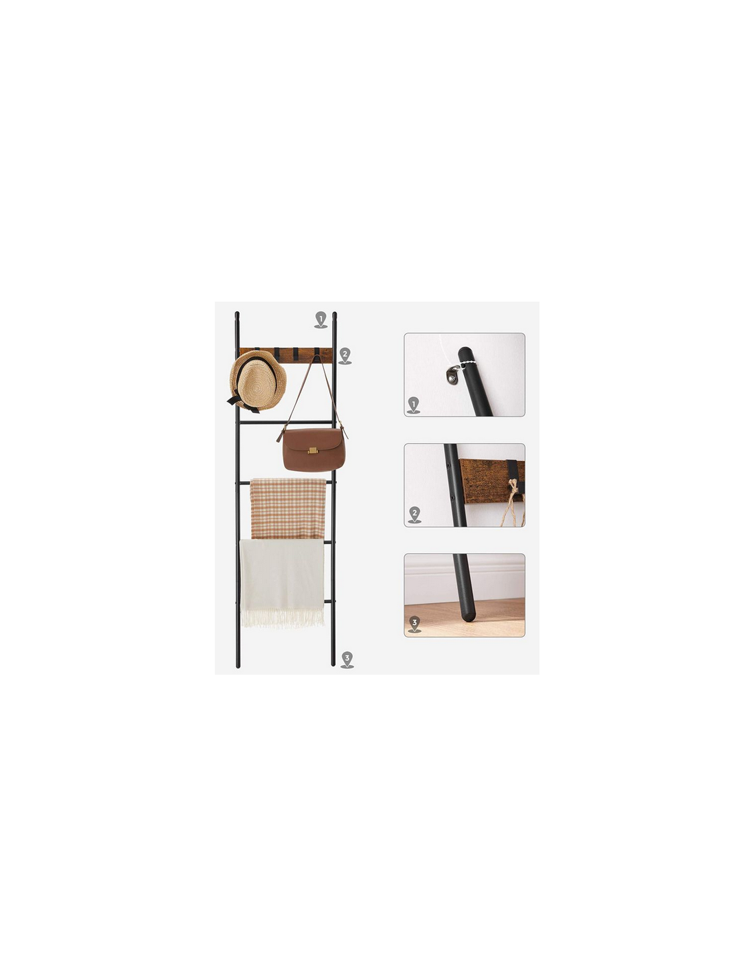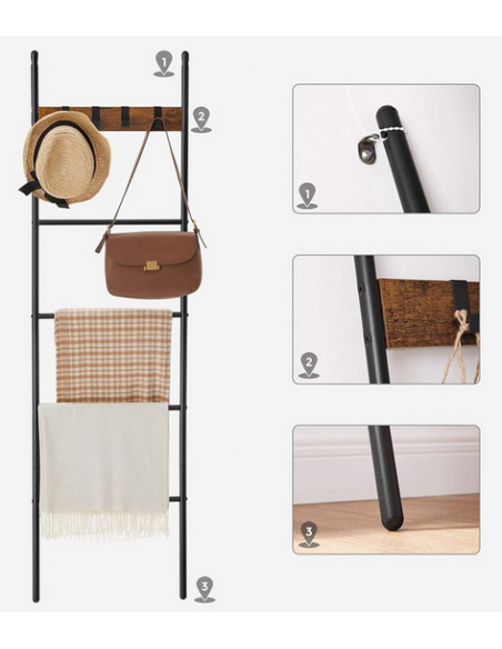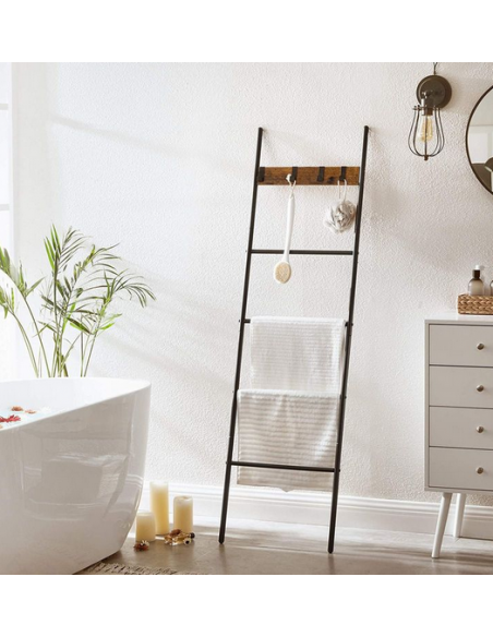 Håndklædetørrer i metal og møbelplade H160 x B44 cm - Sort/Brun