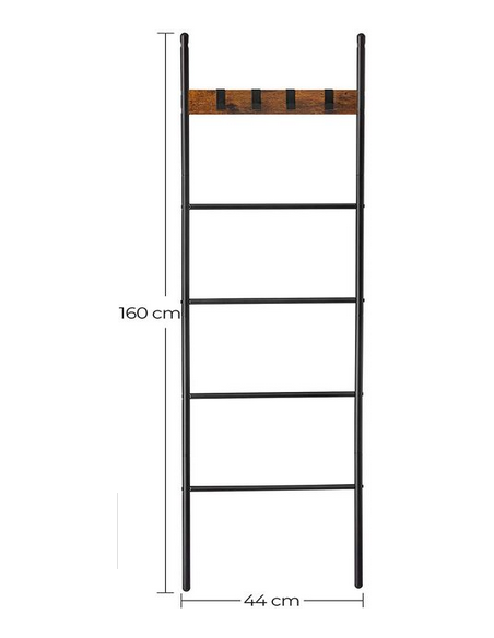 Håndklædetørrer udført i et design af sortlakeret metal og brun møbelplade. Stativet måler 160 cm i højden og 44 cm i bredden.
