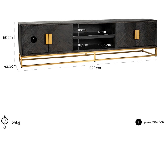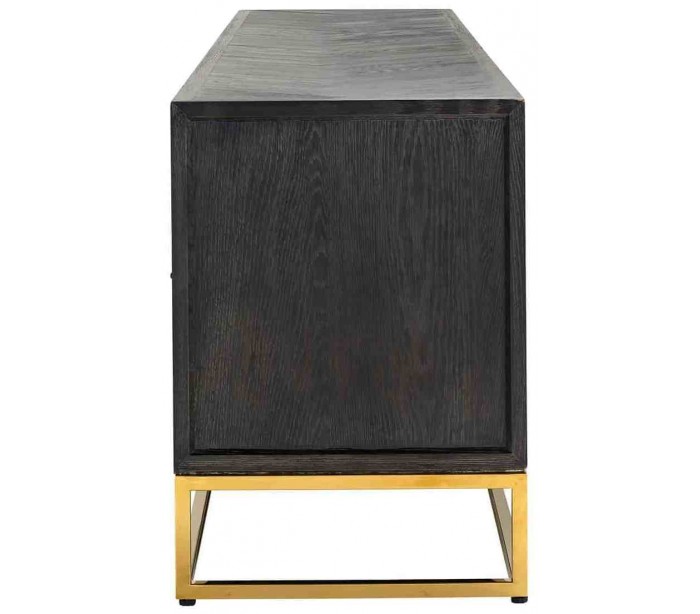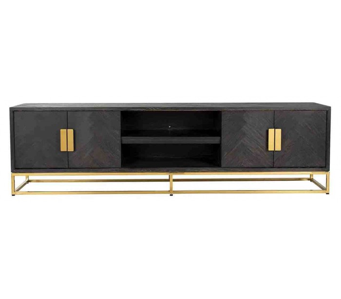 Blackbone tvbord i egetræ og stål B220 cm - Sort/Guld