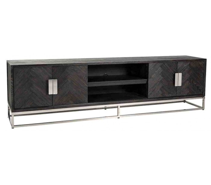 Blackbone tvbord i egetræ og stål B220 cm - Sort/Sølv