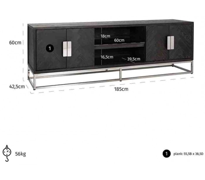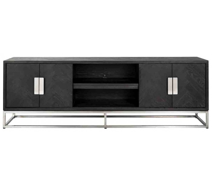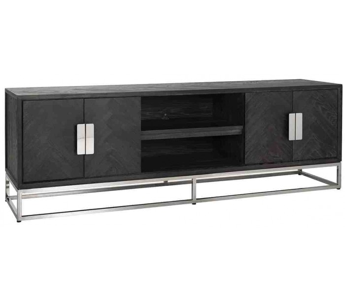 Blackbone tvbord i egetræ og stål B185 cm - Sort/Sølv