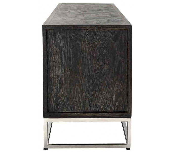 Tvbord i et design fra hollandske Richmond Interiors. Tvbordet er fremstillet med kabinet i egetræ og stel i sølvfarvet stål. Tvbordet måler 185 x 42,5 cm i bredde og dybde og 60 cm i højden.