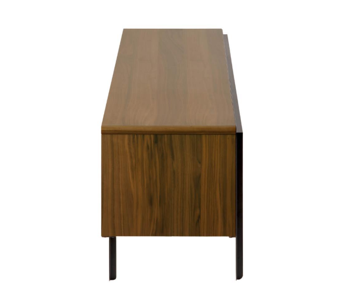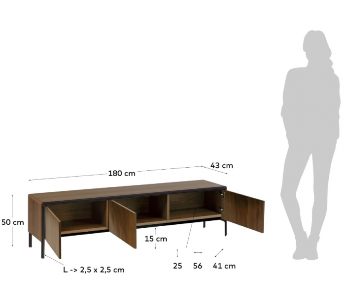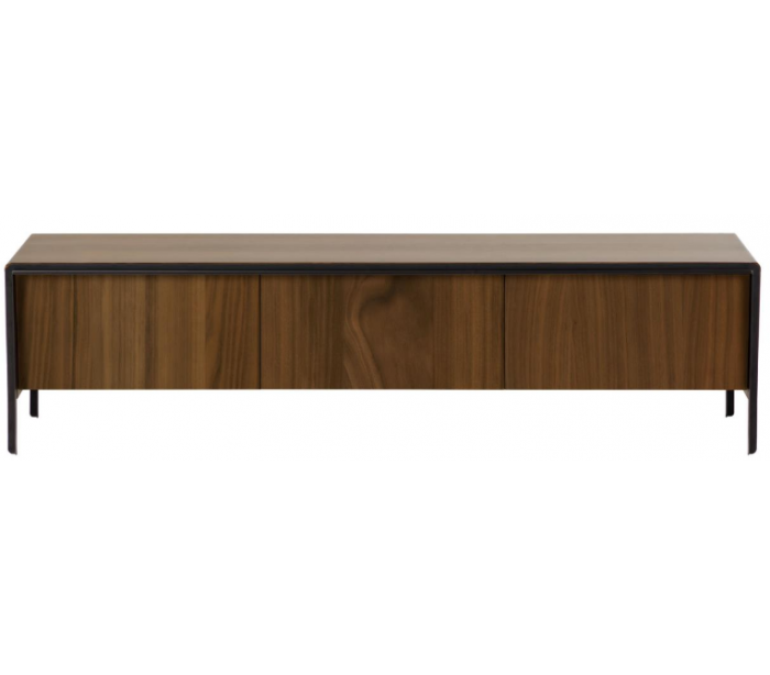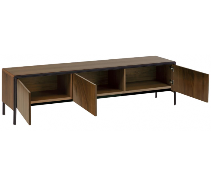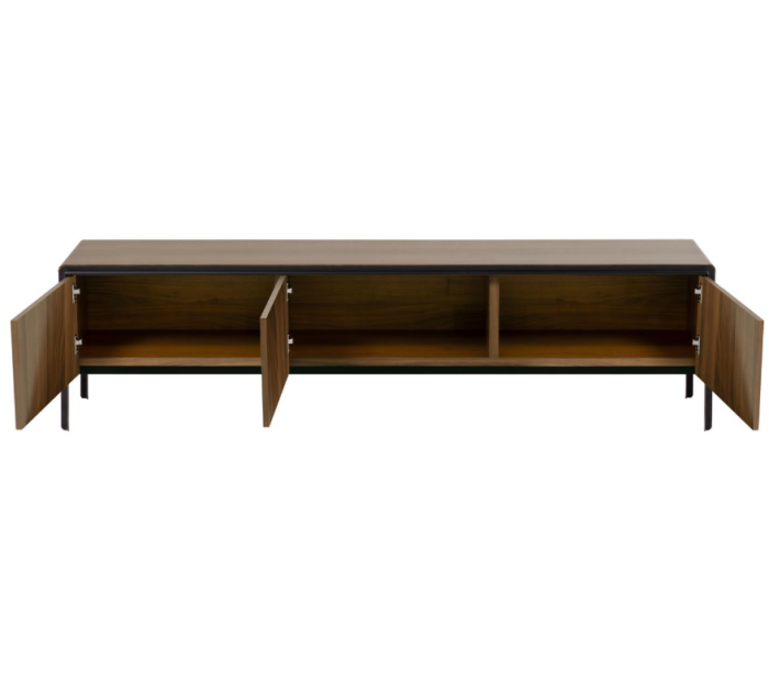 Tvbord med 3 skabe, udført i et moderne skandinavisk design fra LaForma. Tvbordet er fremstillet i sortlakeret metal og valnøddefinér og måler 180 cm i bredden og 50 cm i højden.