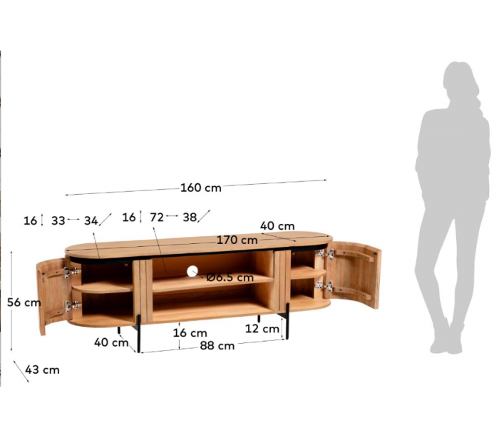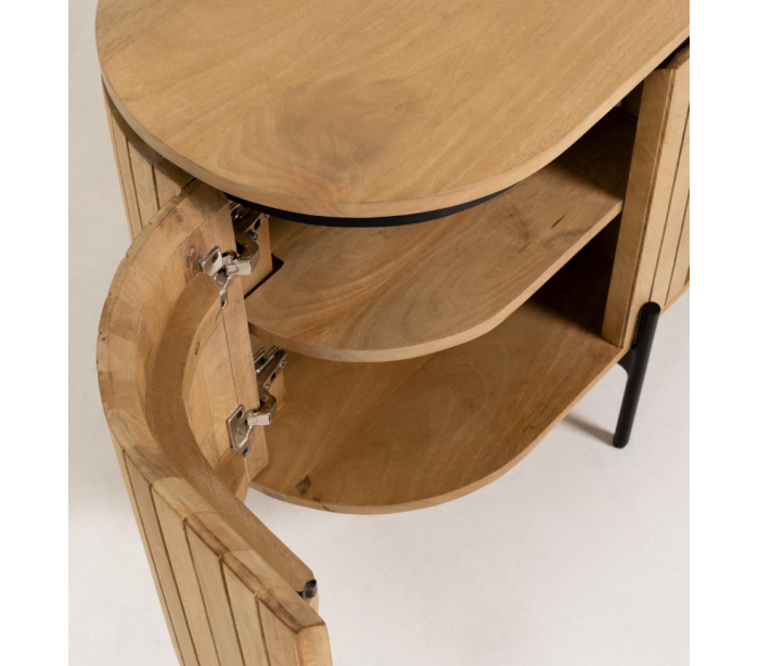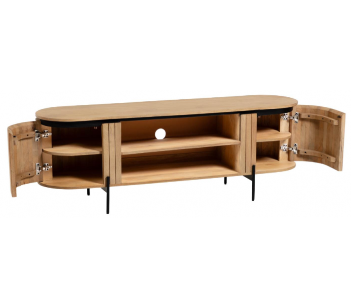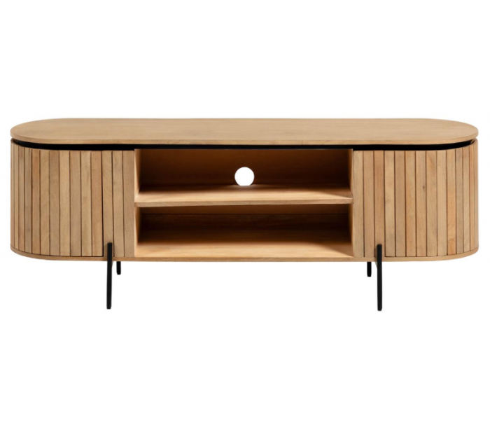 Tvbord med 2 hylderum og 2 skabe med 2 hylderum, udført i et skandinavisk design fra LaForma. Tvbordet er fremstillet i mangotræ og metal og måler 160 cm i bredden.
