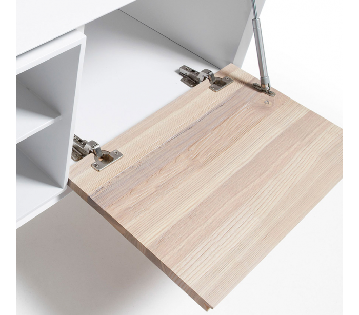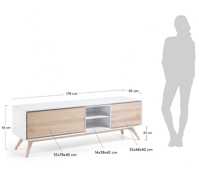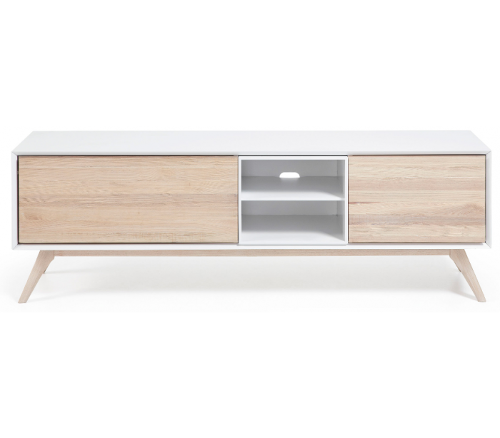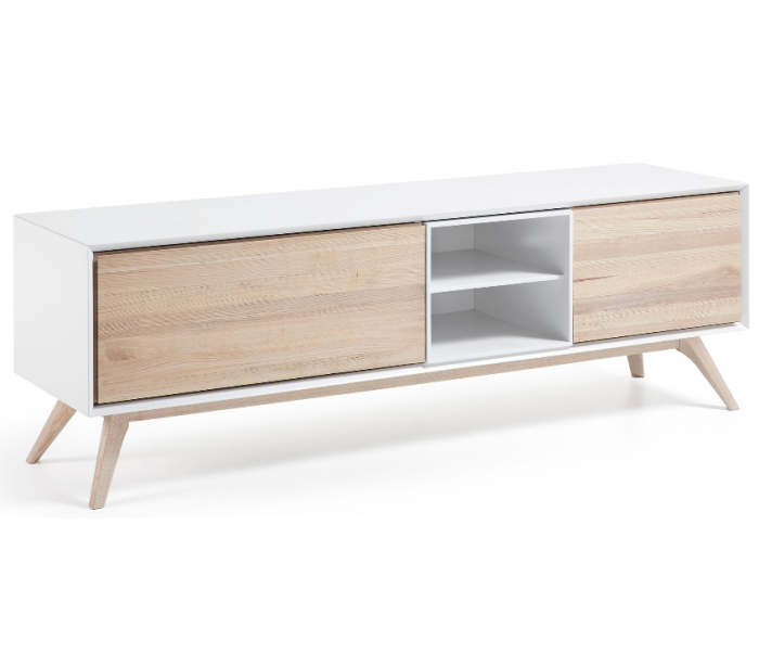 Tvbord med 2 skabe med hylderum, samt 2 hylderum, udført i et skandinavisk design fra LaForma. Tvbordet er fremstillet i mdf og ask finér og måler 174 cm i bredden.