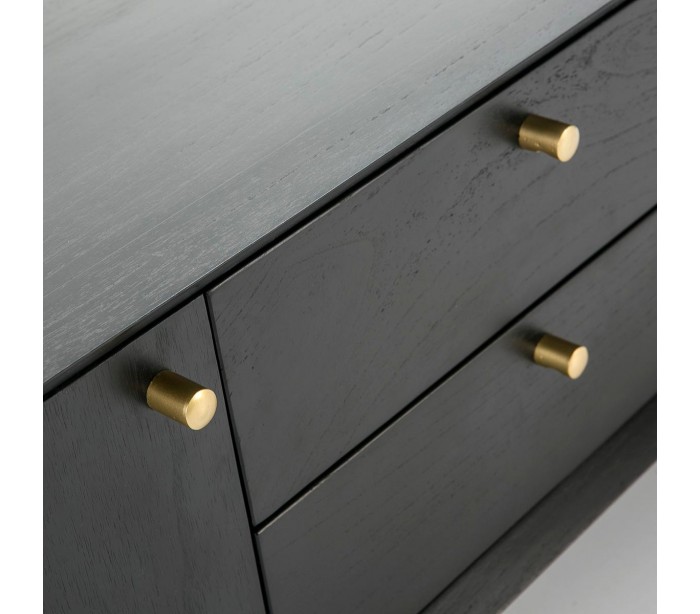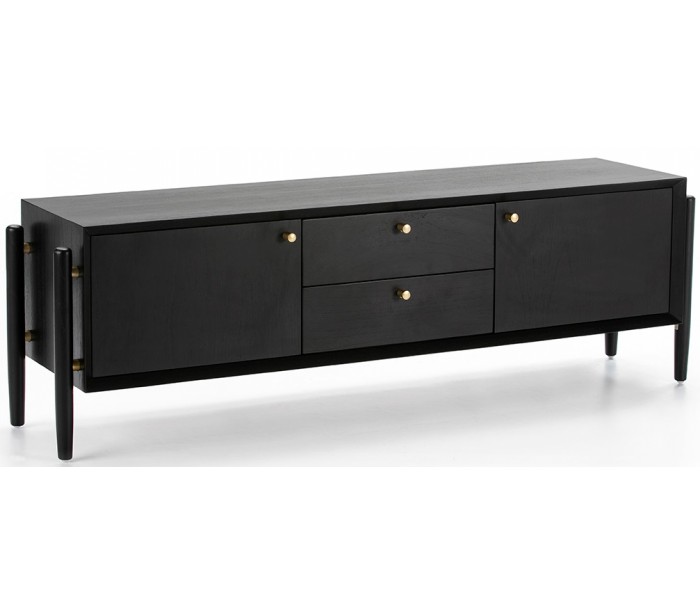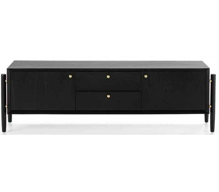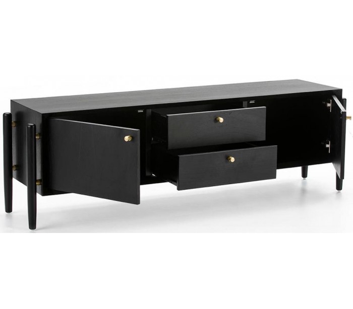 Tvbord udført i et design af sortlakeret træ. Grebene er udført i antik guldfarvet metal. Tvbordet med 2 skuffer og 2 skabe og måler 160 cm i bredden.