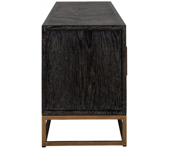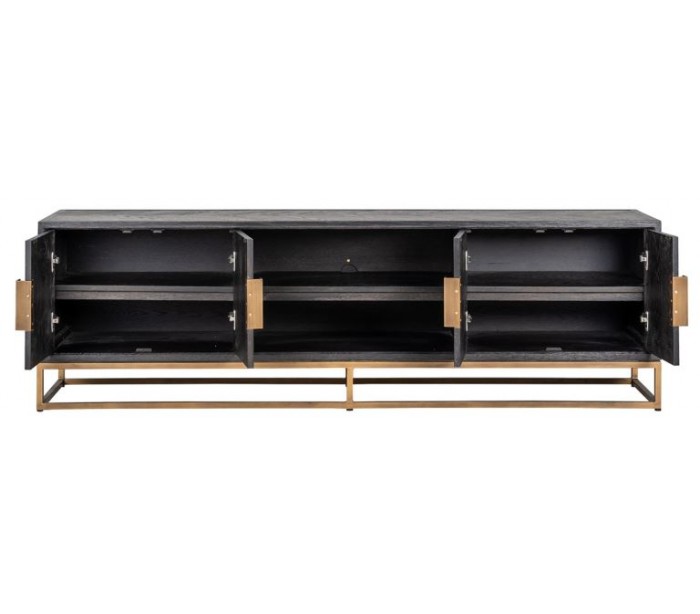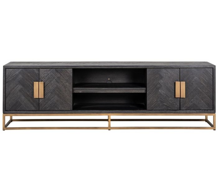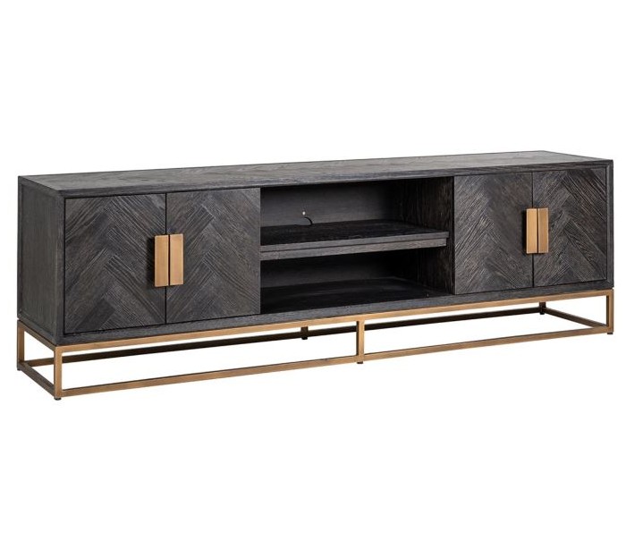 Blackbone tvbord i egetræ og stål B200 cm - Børstet sort/Antik messing