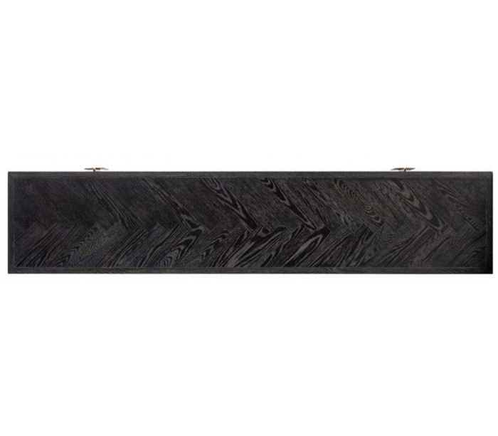 Tvbord i et design fra hollandske Richmond Interiors. Tvbordet er fremstillet med kabinet i børstet sortlakeret egetræ og stel i antik messingfarvet stål. Tvbordet måler 200 x 43 cm i bredde og dybde og 60 cm i højden.