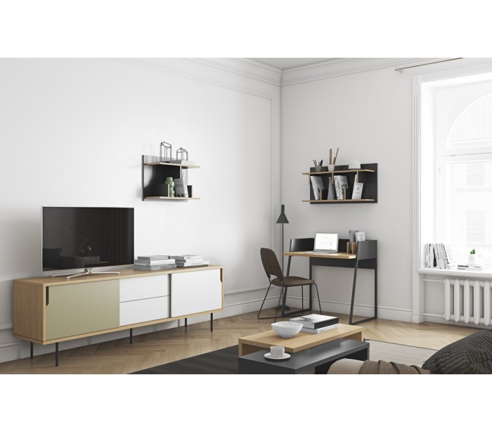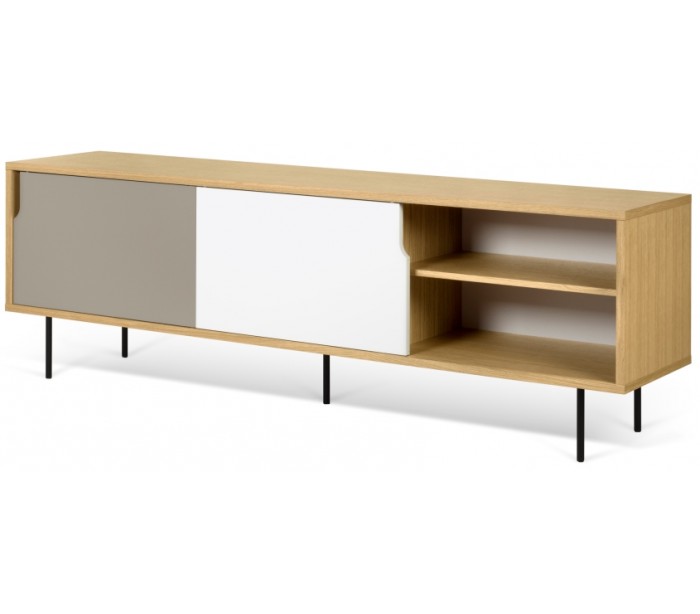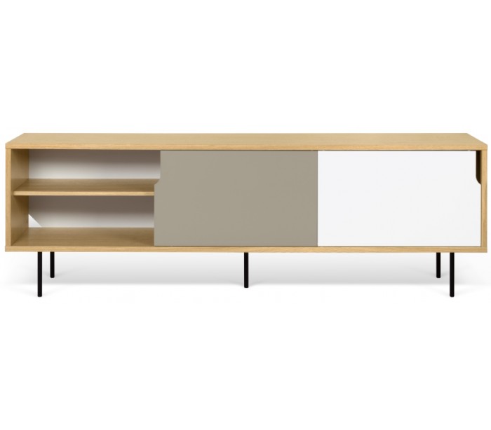 TemaHome Dann tvbord i metal og MDF B201 cm - Sort/Mat hvid/Mat grå/Eg