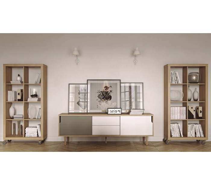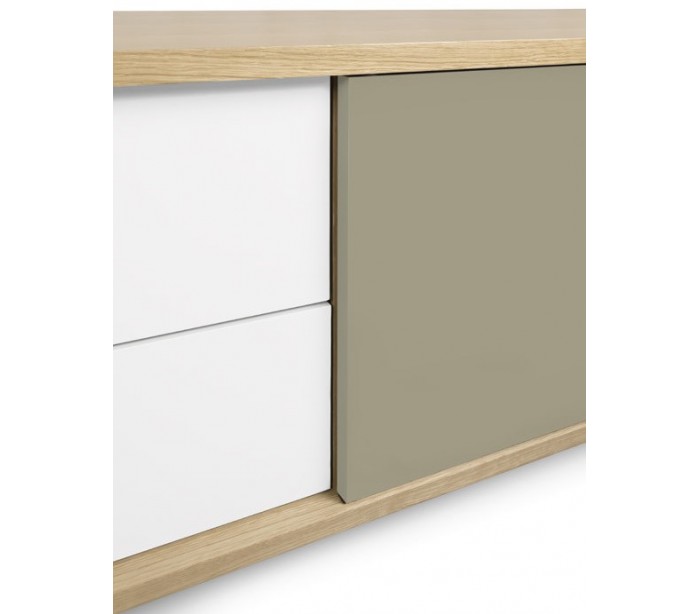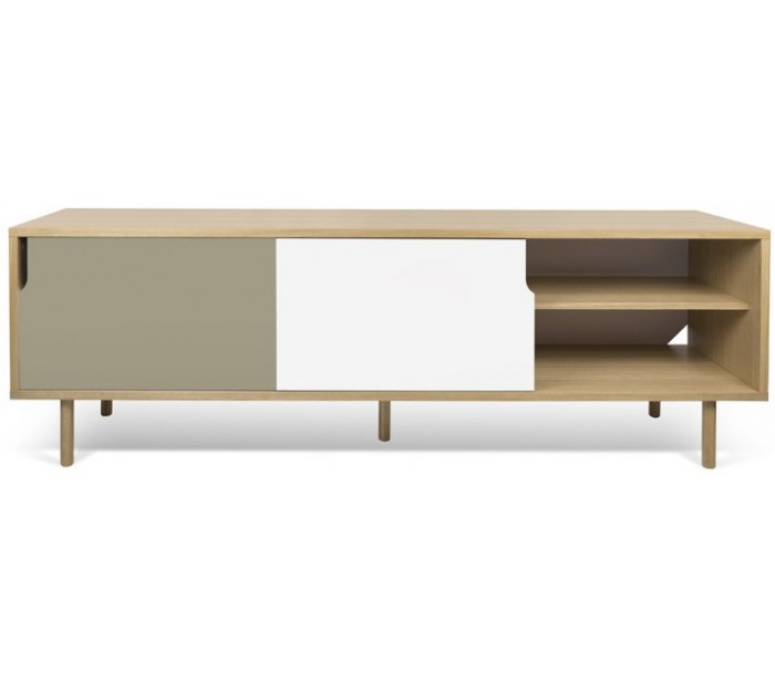 TemaHome Dann tvbord i egetræ og MDF B201 cm - Mat hvid/Mat grå/Eg